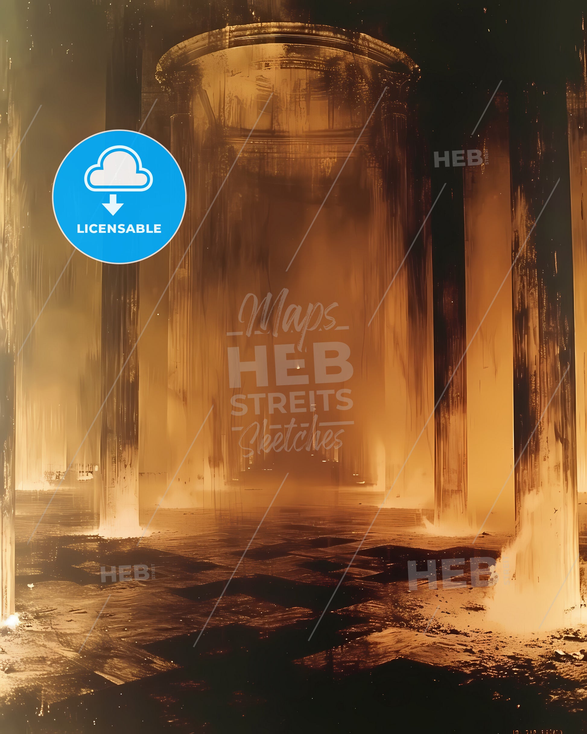 Ancient Israelites At The Old Ancient Prehistoric Temple Of Solomon - A Smoke Coming Out Of A Building