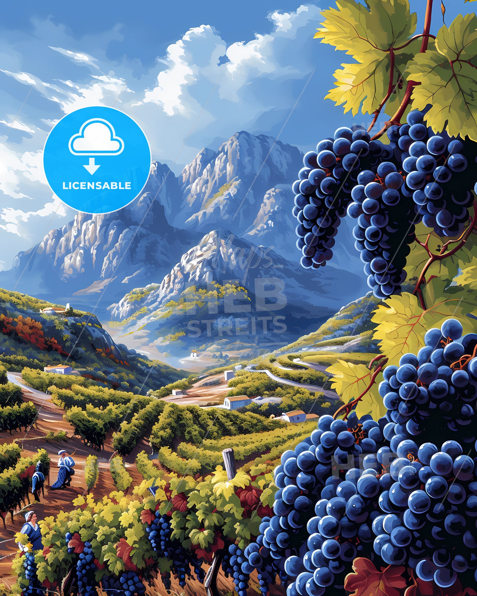 A Picture Of A Sicilian Vineyard - A Painting Of A Vineyard With Grapes