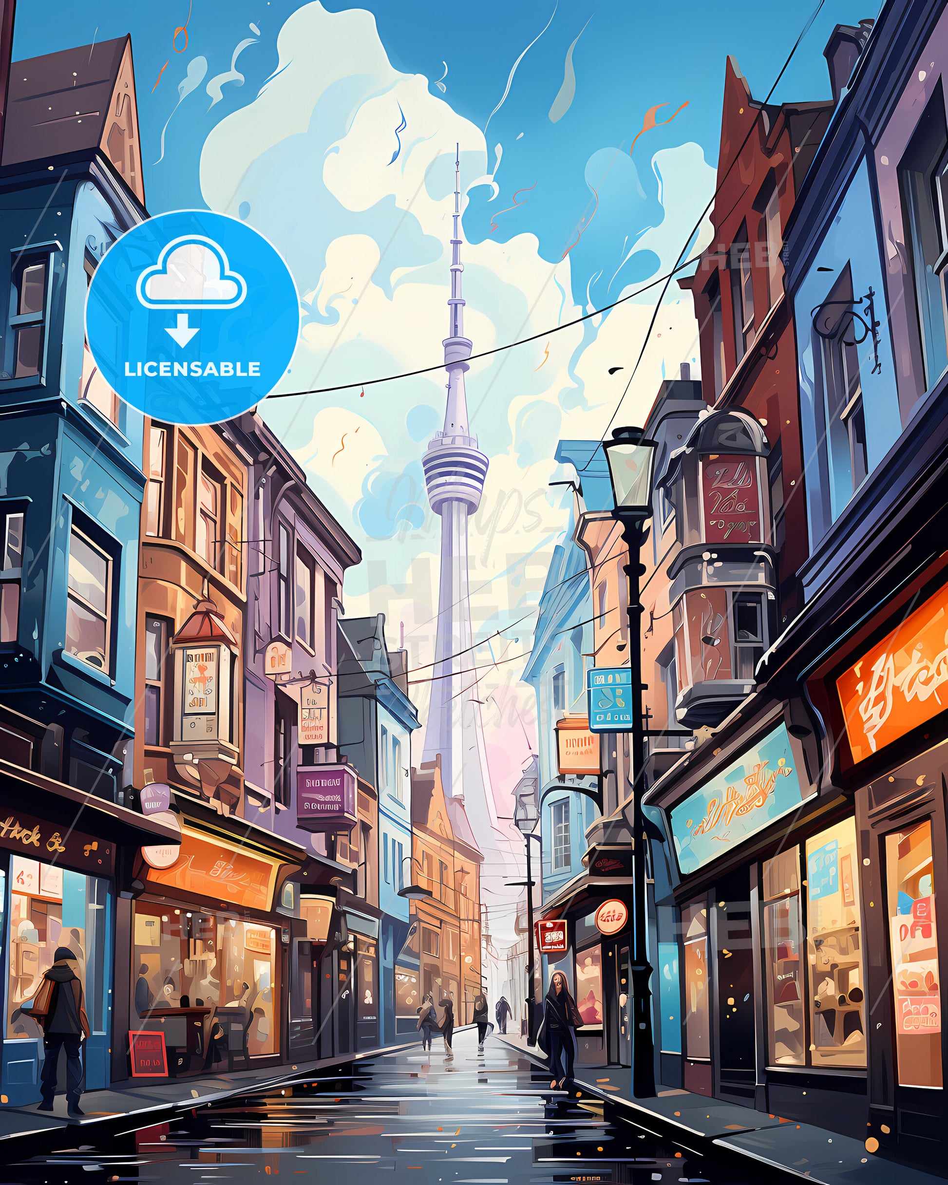 Dublin, Ireland - A Street With Buildings And A Tower In The Background