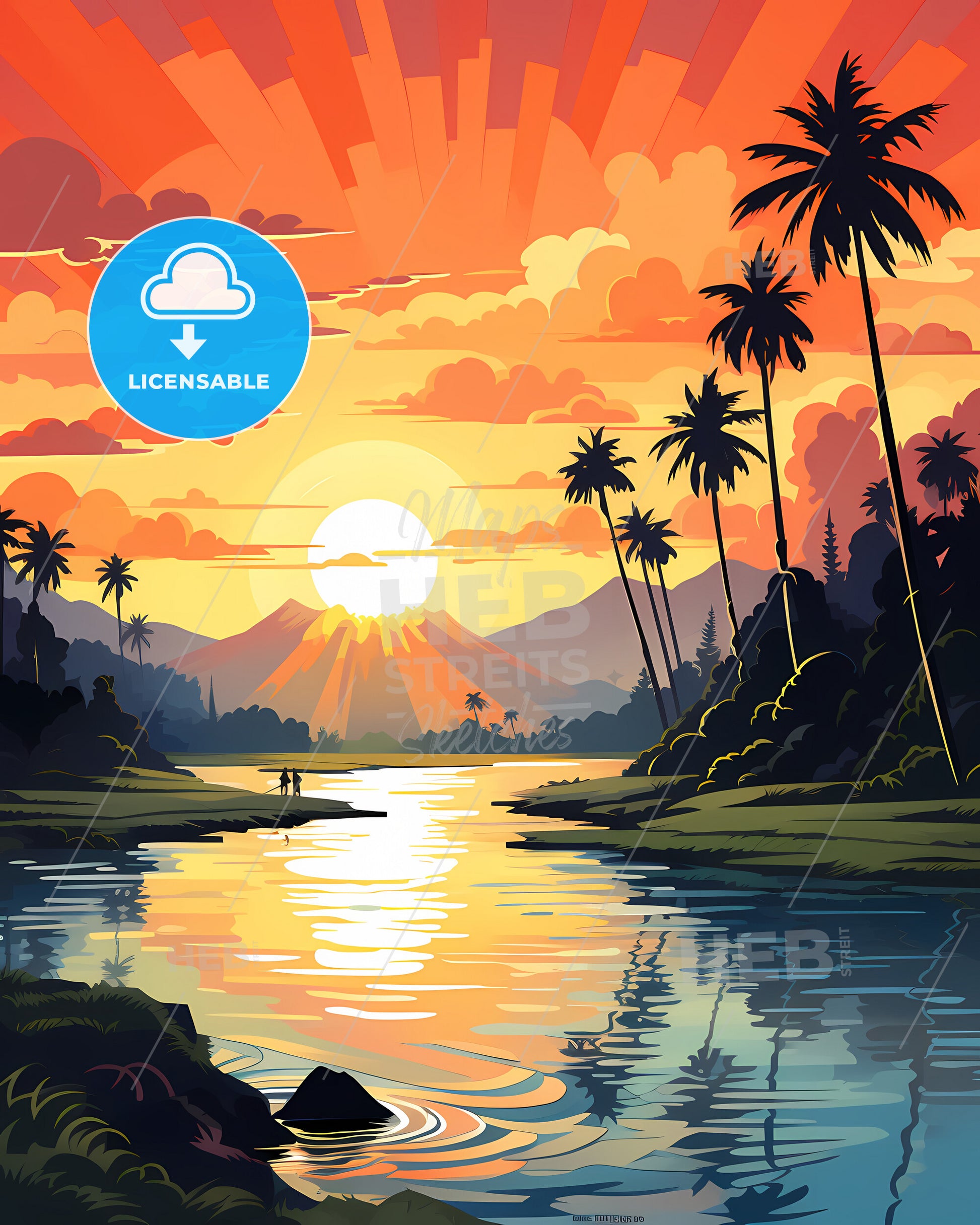 Cook Islands, New Zealand - A River With Palm Trees And Mountains In The Background