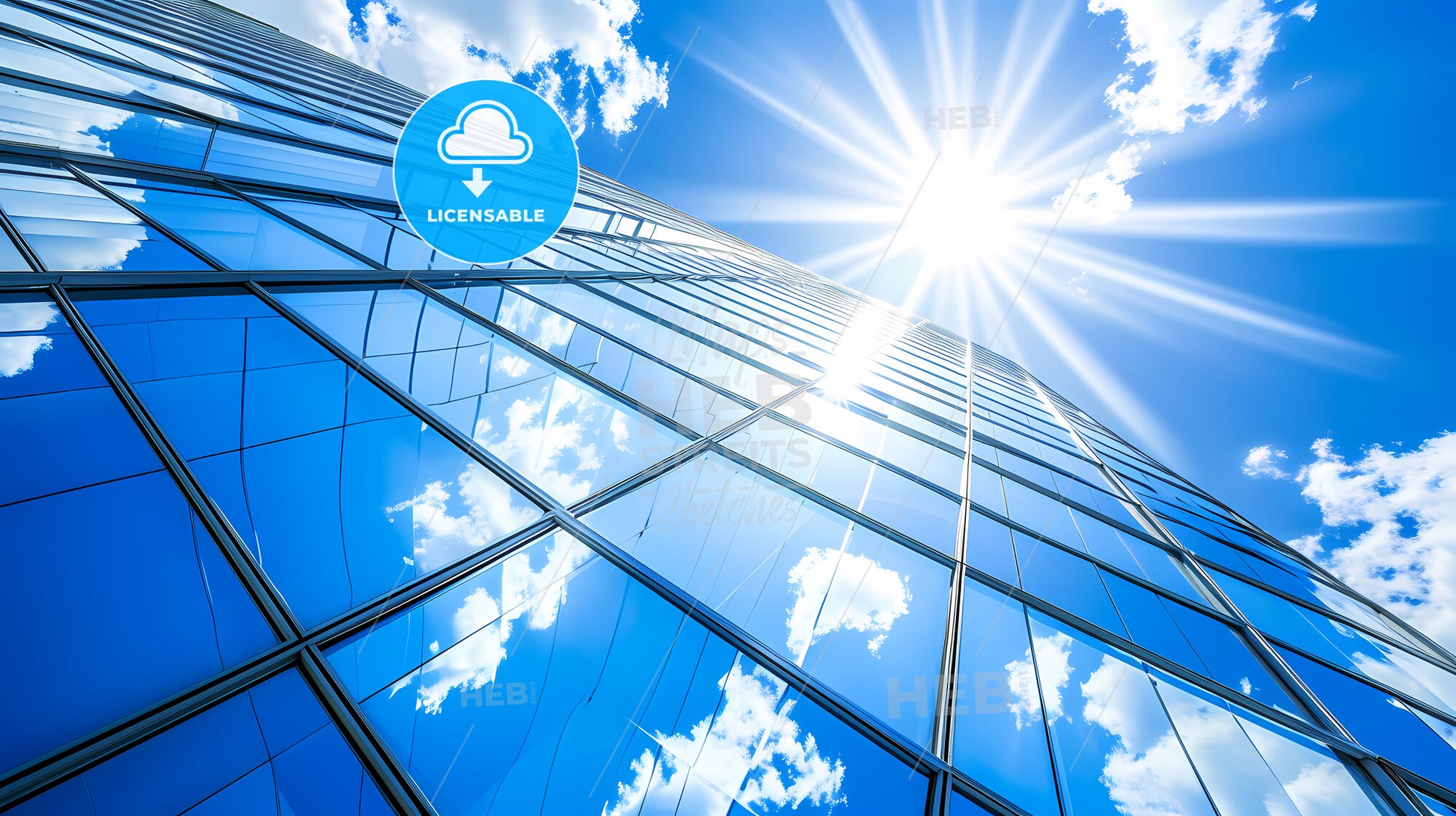 Reflective Skyscrapers, Business Office Buildings - A Low Angle View Of A Building With The Sun Shining Through It