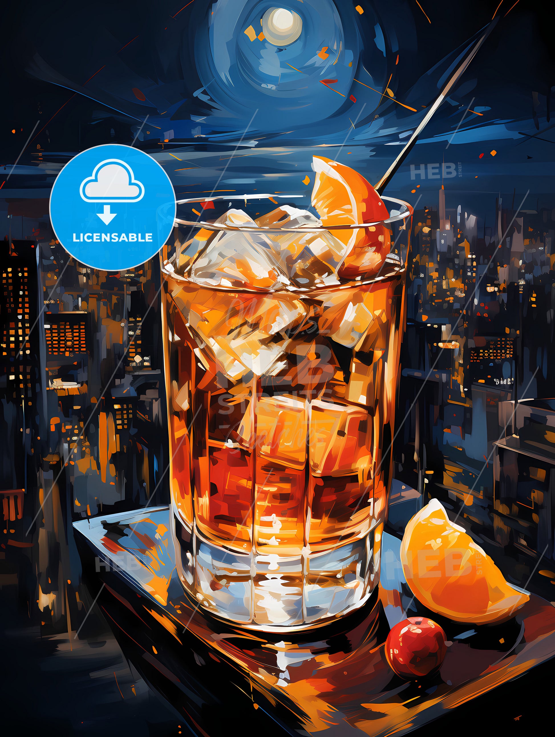 A Manhattan Is A Cocktail Made With Whiskey - a glass of alcohol with ice and orange slices on top of a city