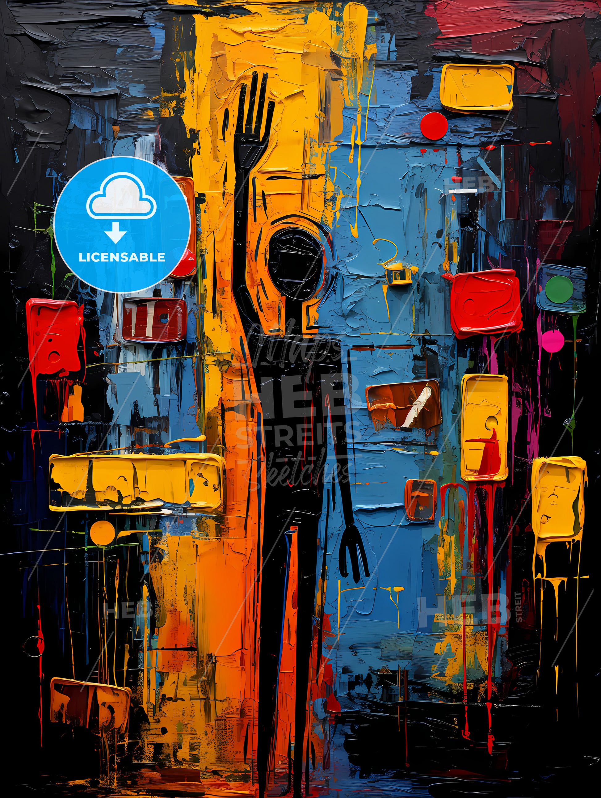 A New York Pedestrian Walk Sign - a painting of a person with their hand up