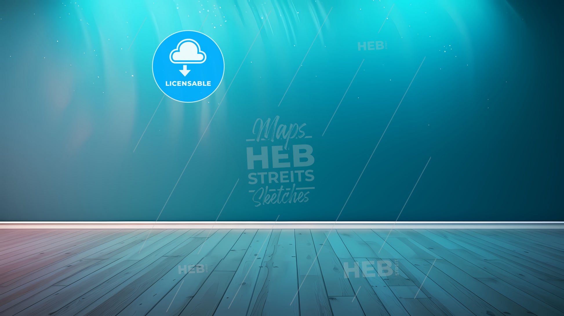 This is a picture of a large, airy room with a blue wall and a wooden floor. The walls are painted in a bright, navy blue shade, and the floor is made of a dark brown, hardwood material. There is a large window in the center of the room, letting in natural light. The room is sparsely decorated, with a few pieces of furniture and some plants adding a splash of color.
