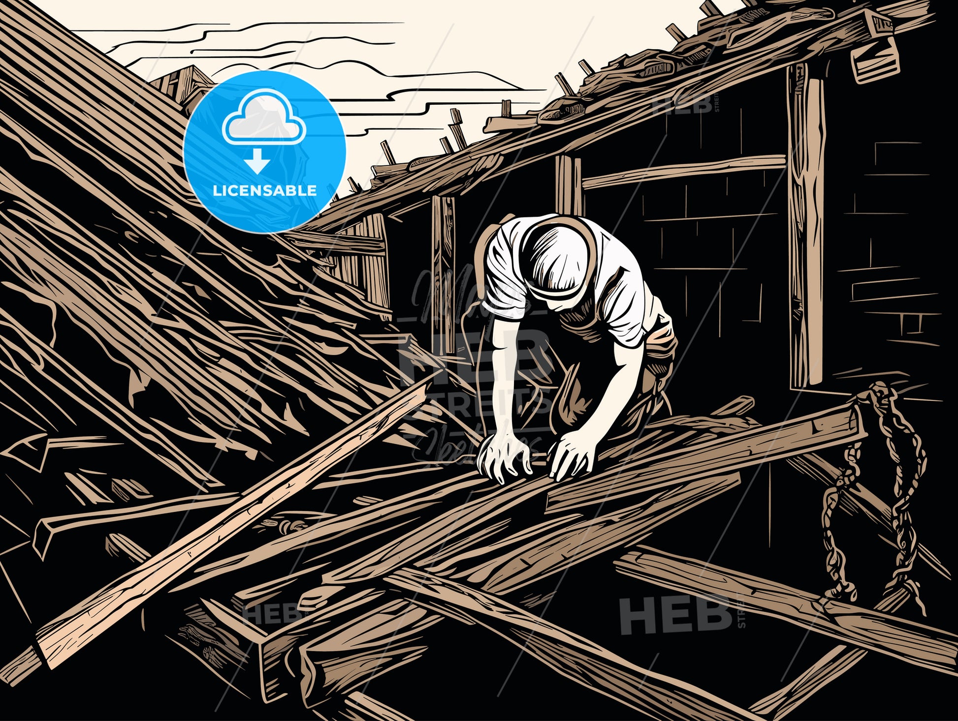 A Woman Working Intensive On A House Constructio - a man working on a broken roof
