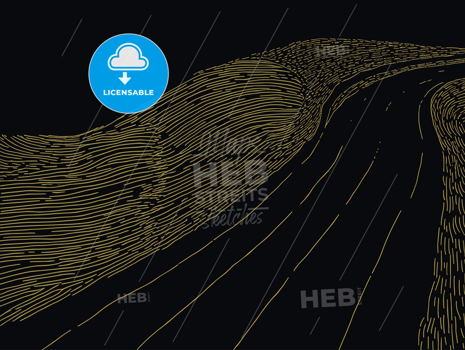 A Yellow Taxicab Speeding Along On A New York City - a yellow lines on a black background