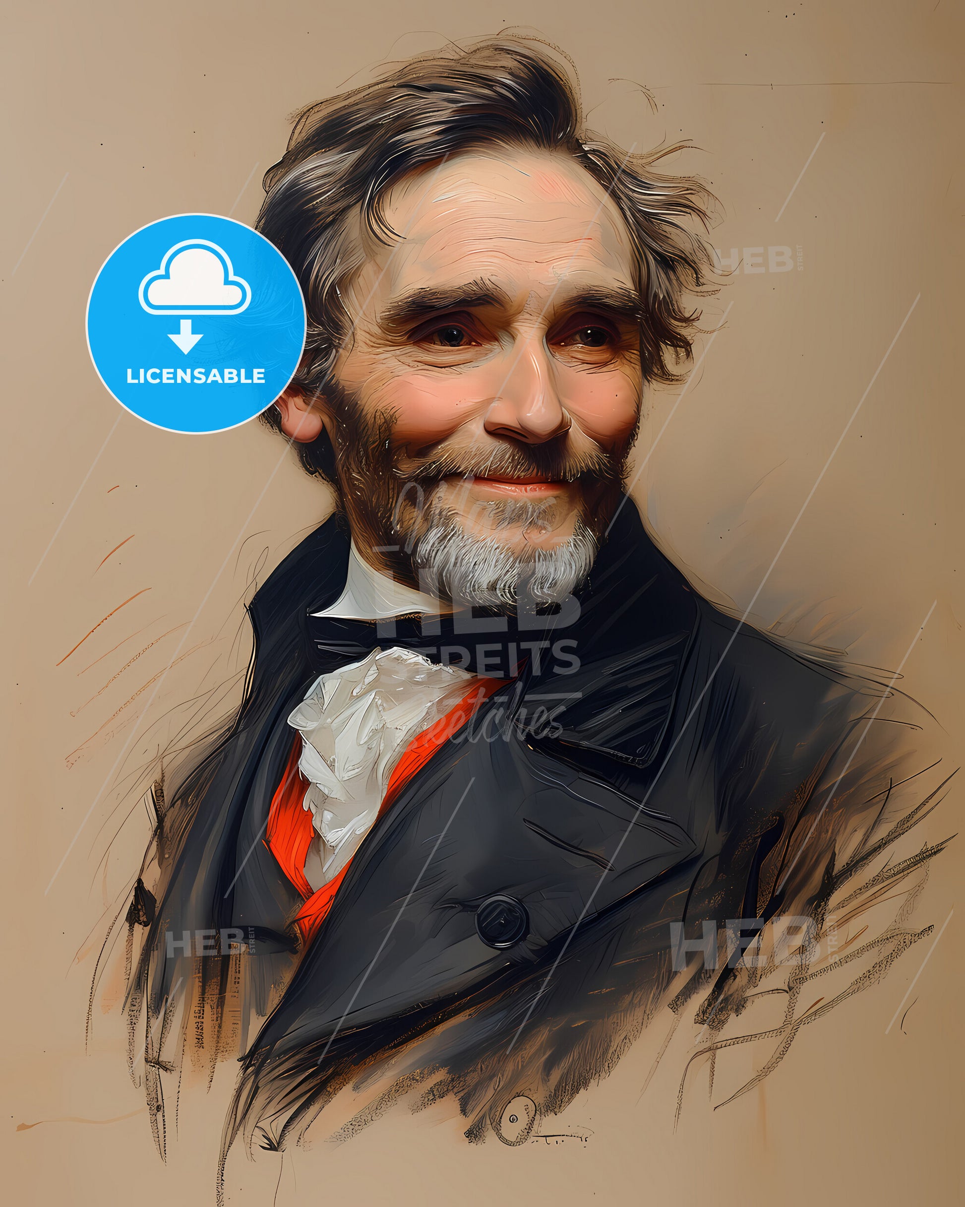 Portrait of Admiral Horatio Nelson, 1758 - 1805, Naval Commander, British naval hero, known for his victories during the Napoleonic Wars, including the Battle of Trafalgar. smiling. Vintage art illustration on bright beige paper background, sweeping overdrawn lines, subtile colored artwork, that captures the playful spirit and vivid imagination of modern art.
