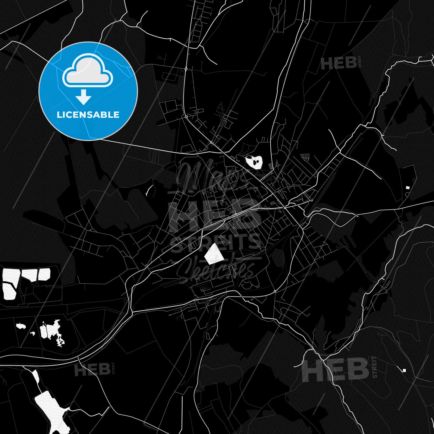 Black and white vector map of Ajka, Veszprém, Hungary with fine structures and patterns for download. This printable map of Ajka with major and minor roads has been carefully designed for all personal and professional needs. The pure PDF vector version of this map is fully scalable. Depending on our license, you can use this map for websites, marketing background and wall art.