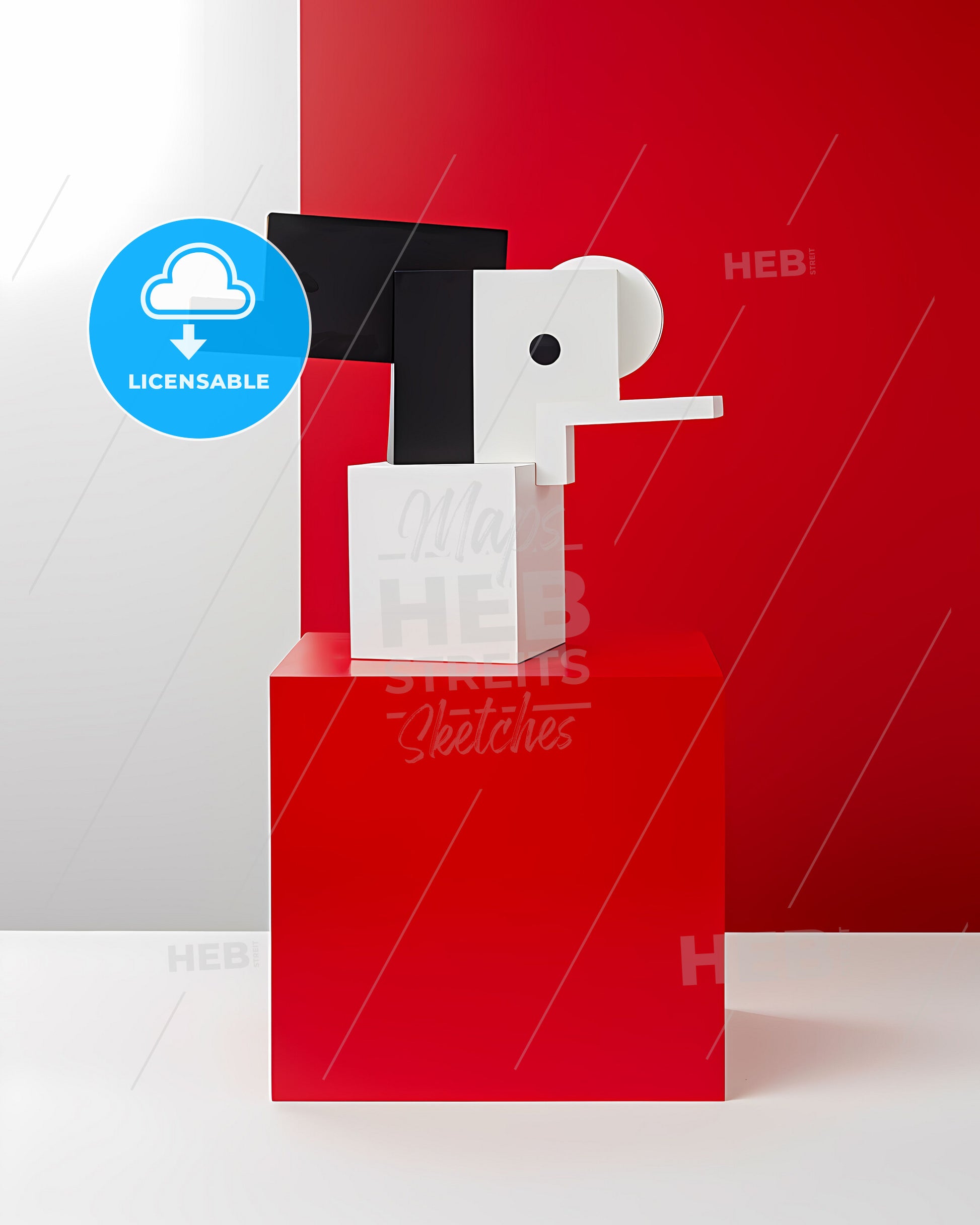 De Stijl Inspired Abstract Painting: Geometric Composition of Rectangles and Squares in Red and White