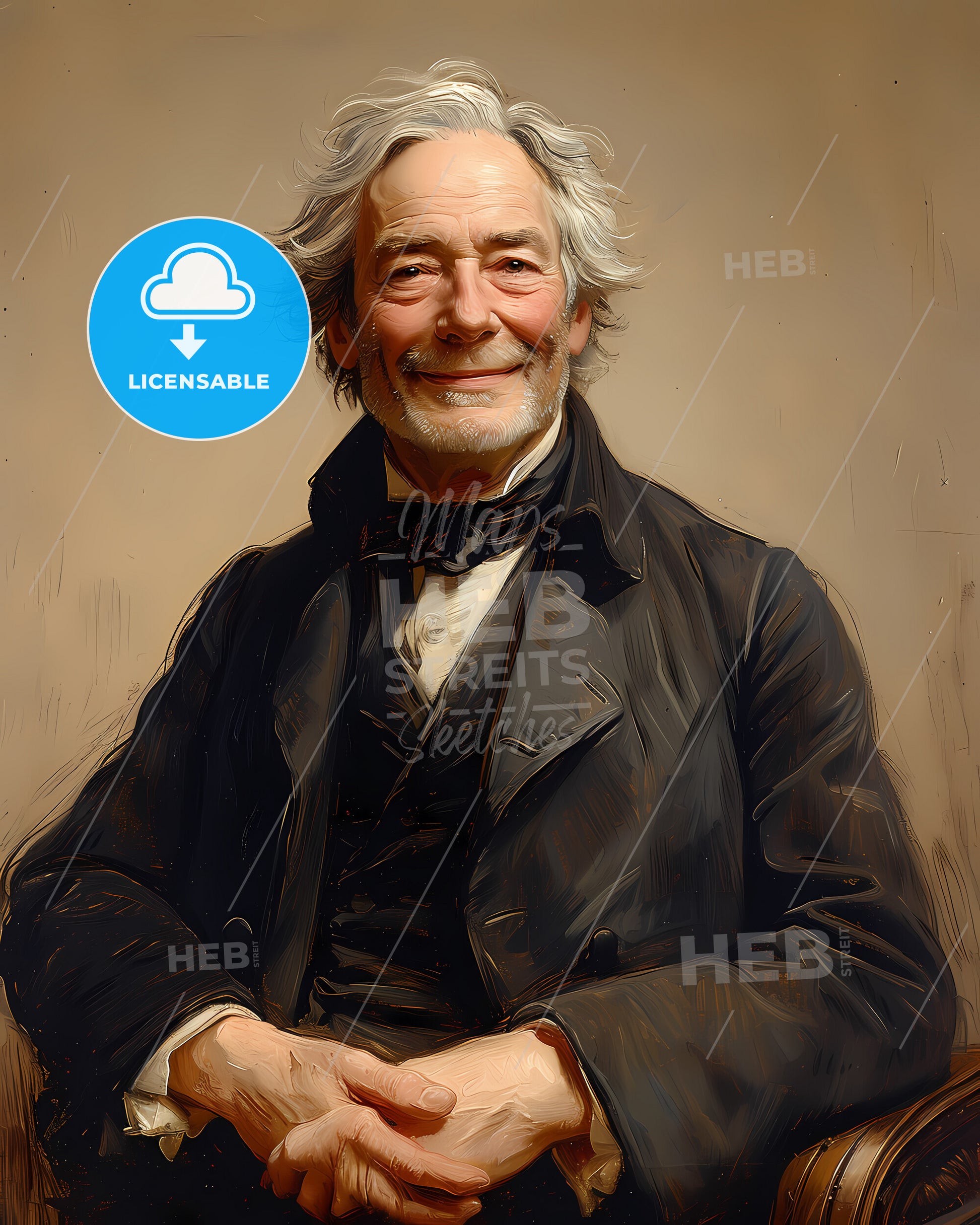 Portrait of Andrew Johnson, 1808 - 1875, 17th President of the United States, Became President after Lincoln's assassination, involved in post-Civil War Reconstruction. smiling. Vintage art illustration on bright beige paper background, sweeping overdrawn lines, subtile colored artwork, that captures the playful spirit and vivid imagination of modern art.