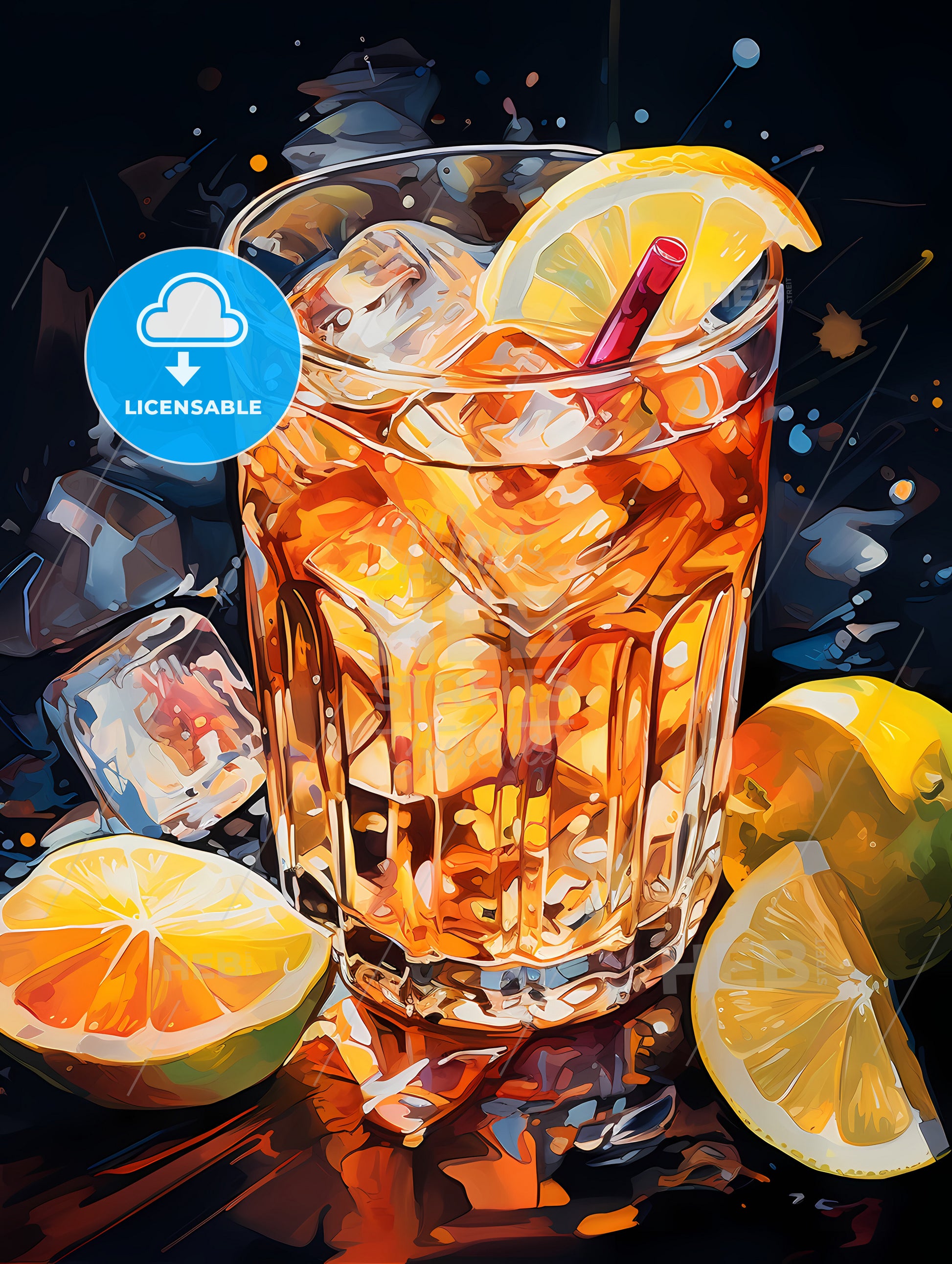 Apple Chai Gin And Tonic - a glass of ice tea with lemons and ice