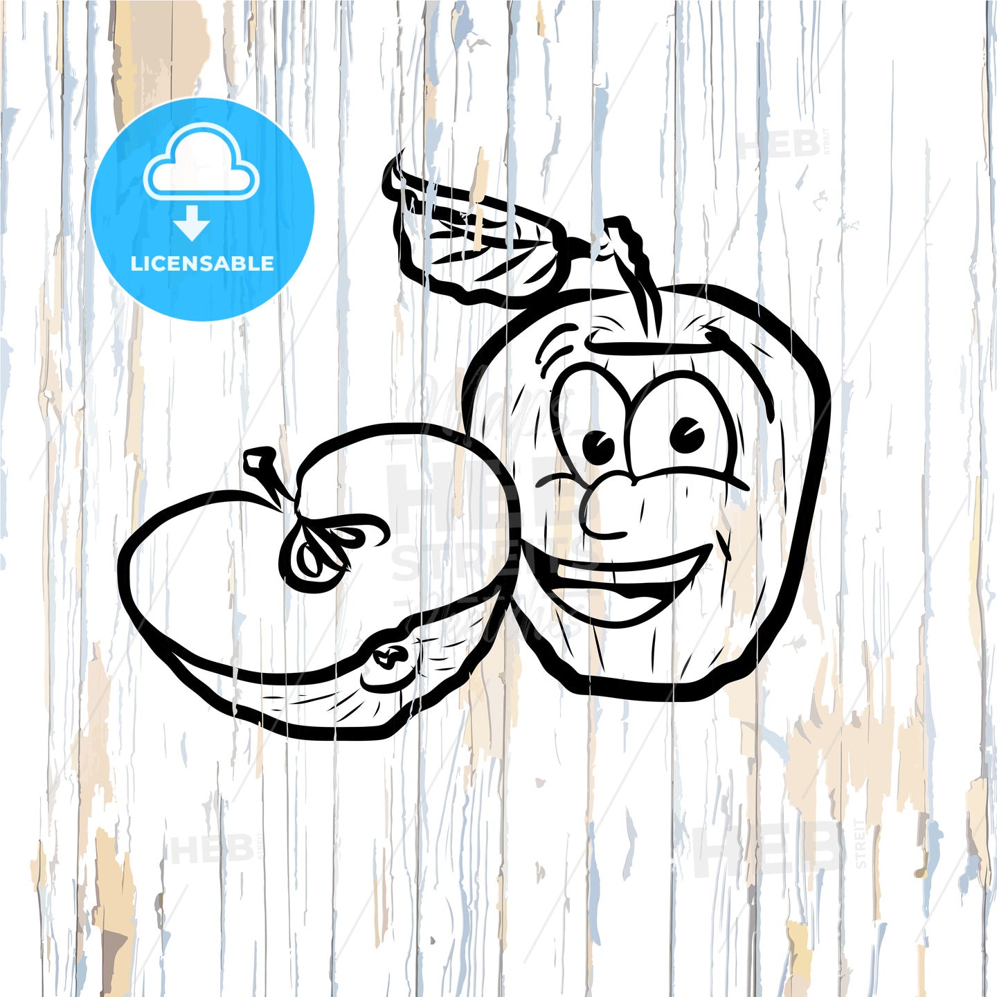 Apple icons sketches on wooden background. Vector illustration drawn by hand.