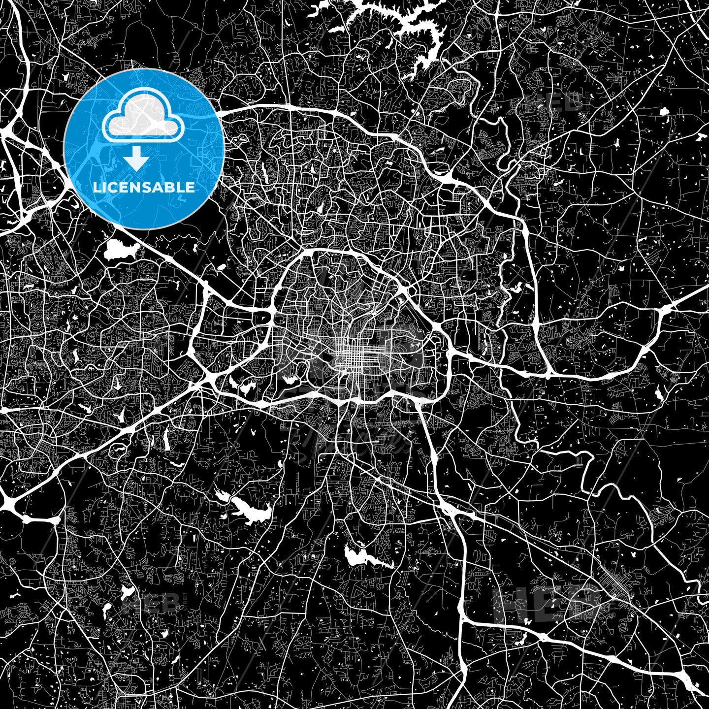 Raleigh, USA, area map in black and white version with many details for high zoom levels. This map of Raleigh contains typical landmarks for traffic with space for additional information and easy access to color changes.