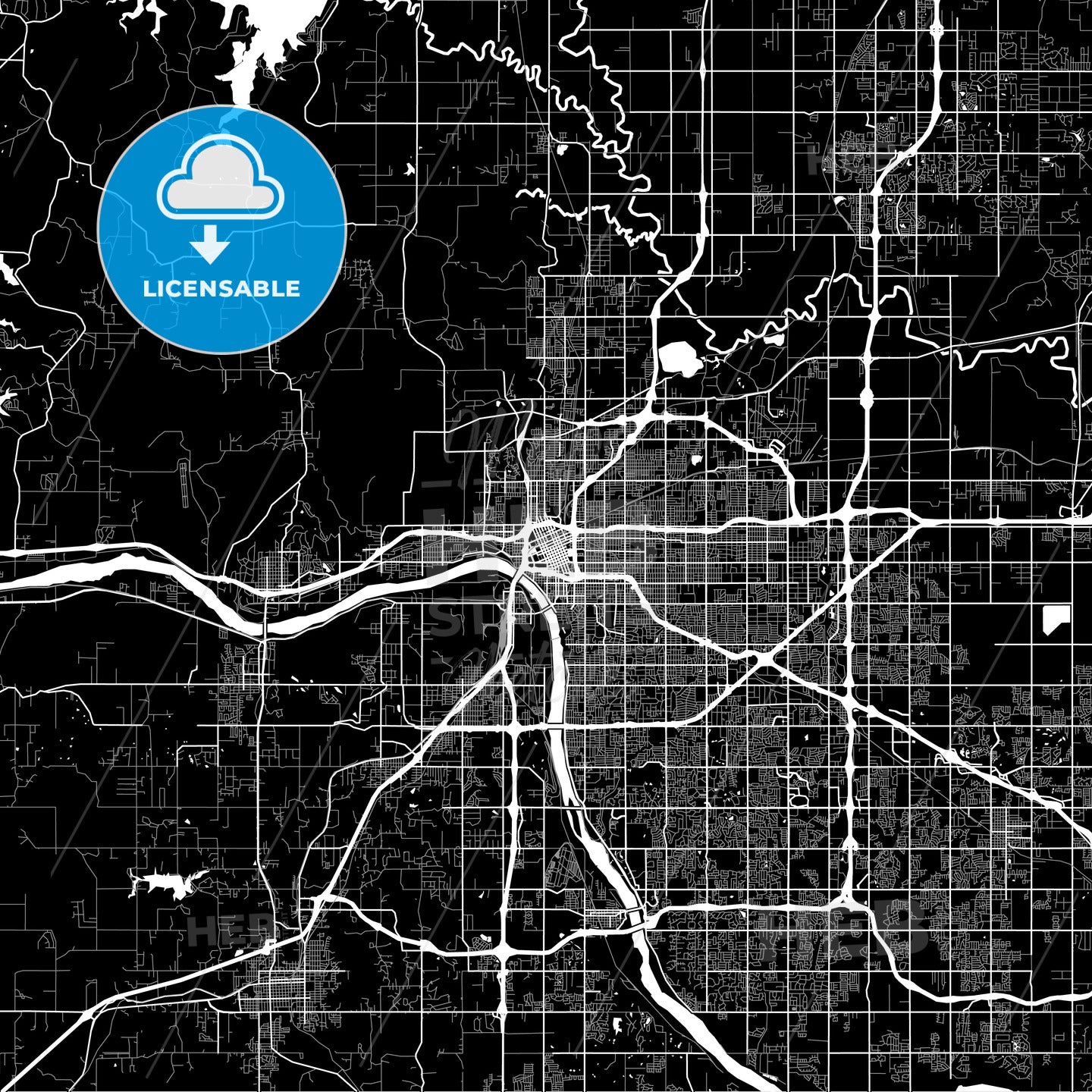 Tulsa, USA, area map in black and white version with many details for high zoom levels. This map of Tulsa contains typical landmarks for traffic with space for additional information and easy access to color changes.