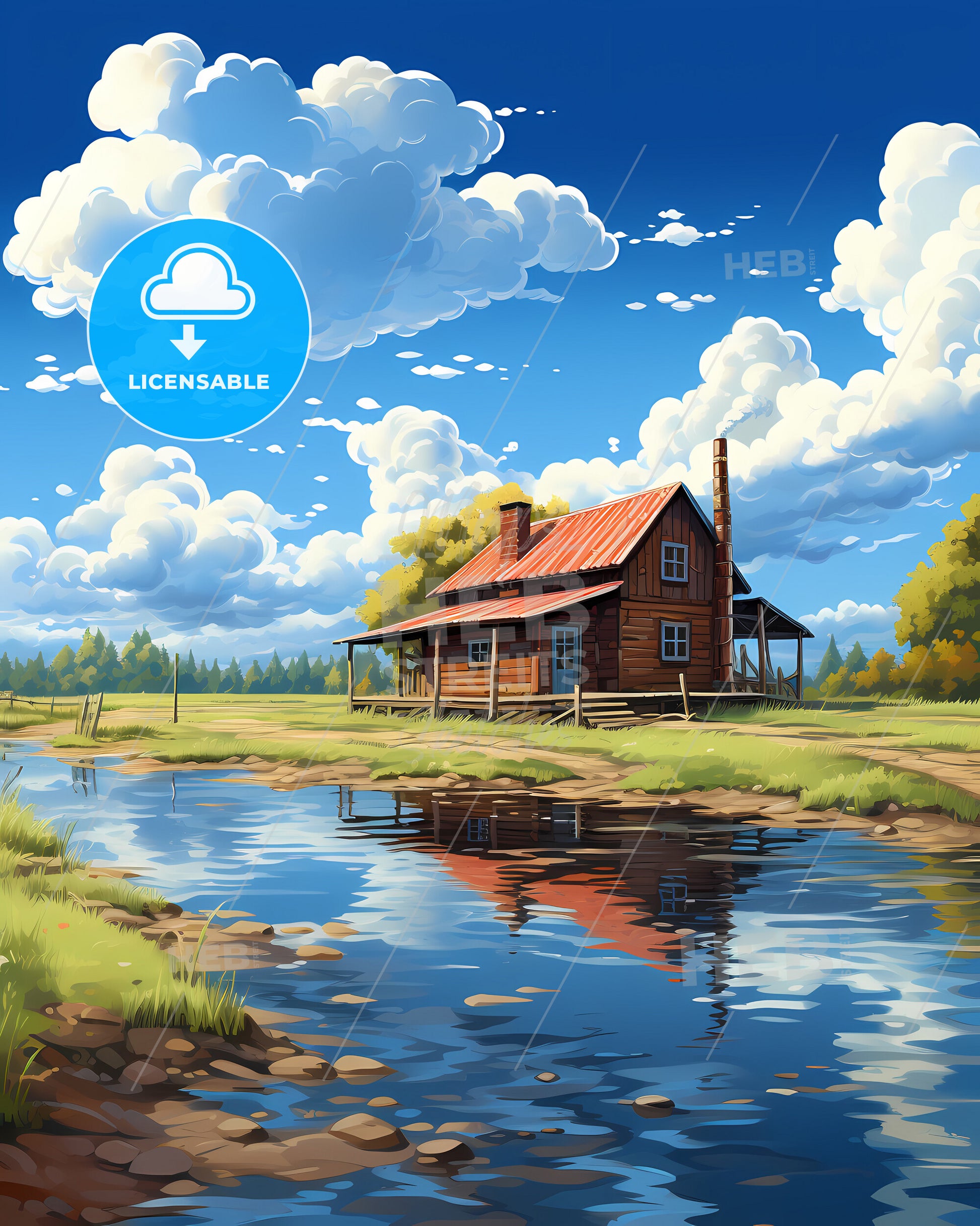 Assen, Drenthe, Netherlands, Skyline. art painting with blue sky some bright clouds in spring. in style of classic advertising illustration with nice gradients. Nice strokes and outlines that captures the playful spirit and vivid imagination of modern art.