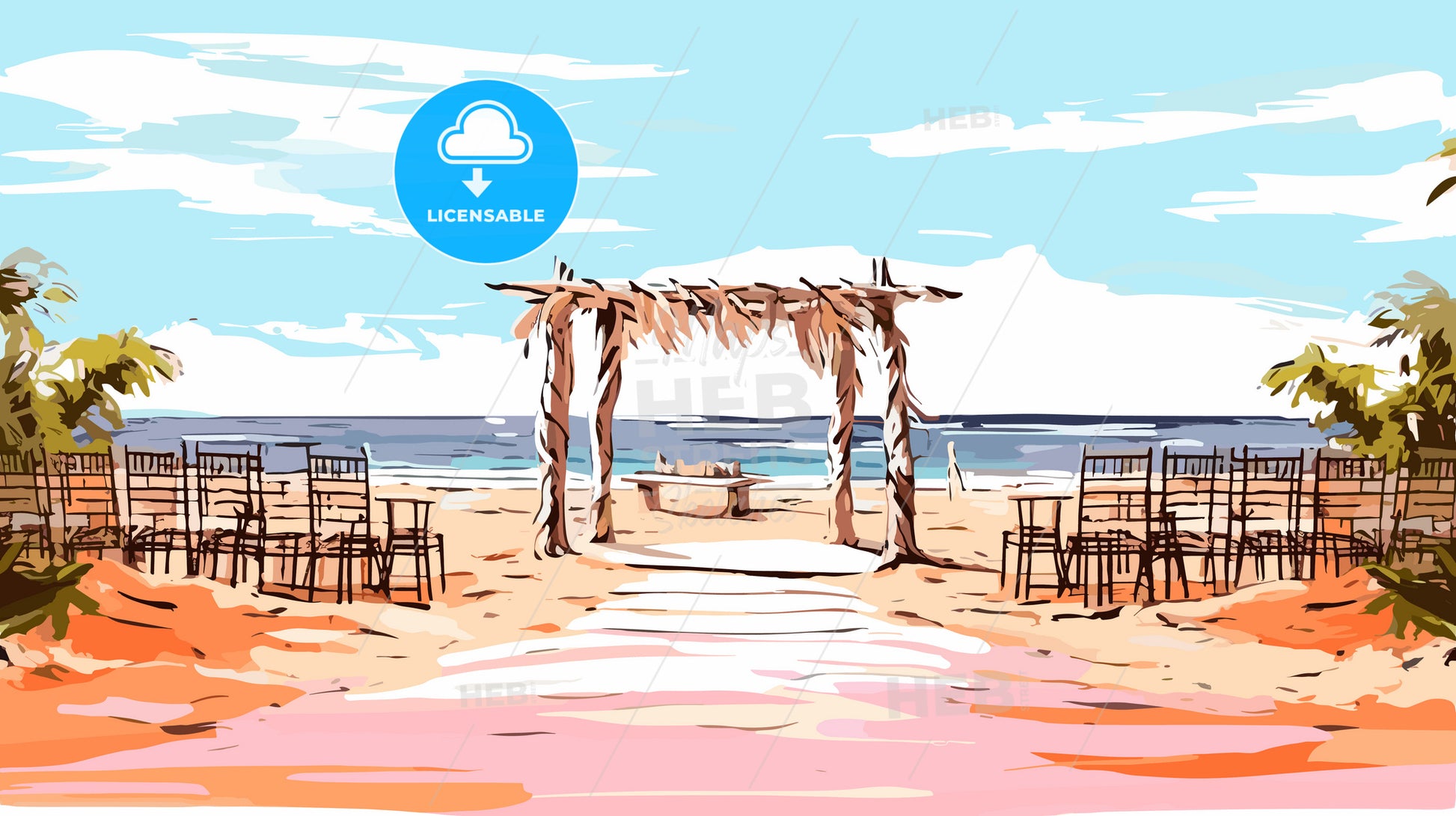Beach Wedding Setting Where The Ceremony Will Take Place - a beach with chairs and a gazebo