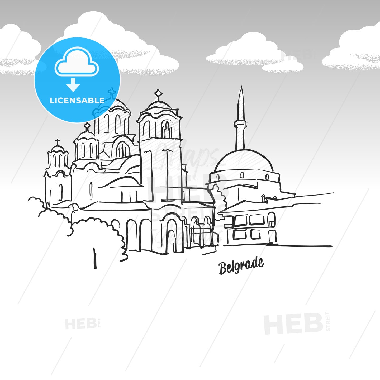 Belgrade, Serbia famous landmark sketch. Lineart drawing by hand. Greeting card icon with title, vector illustration