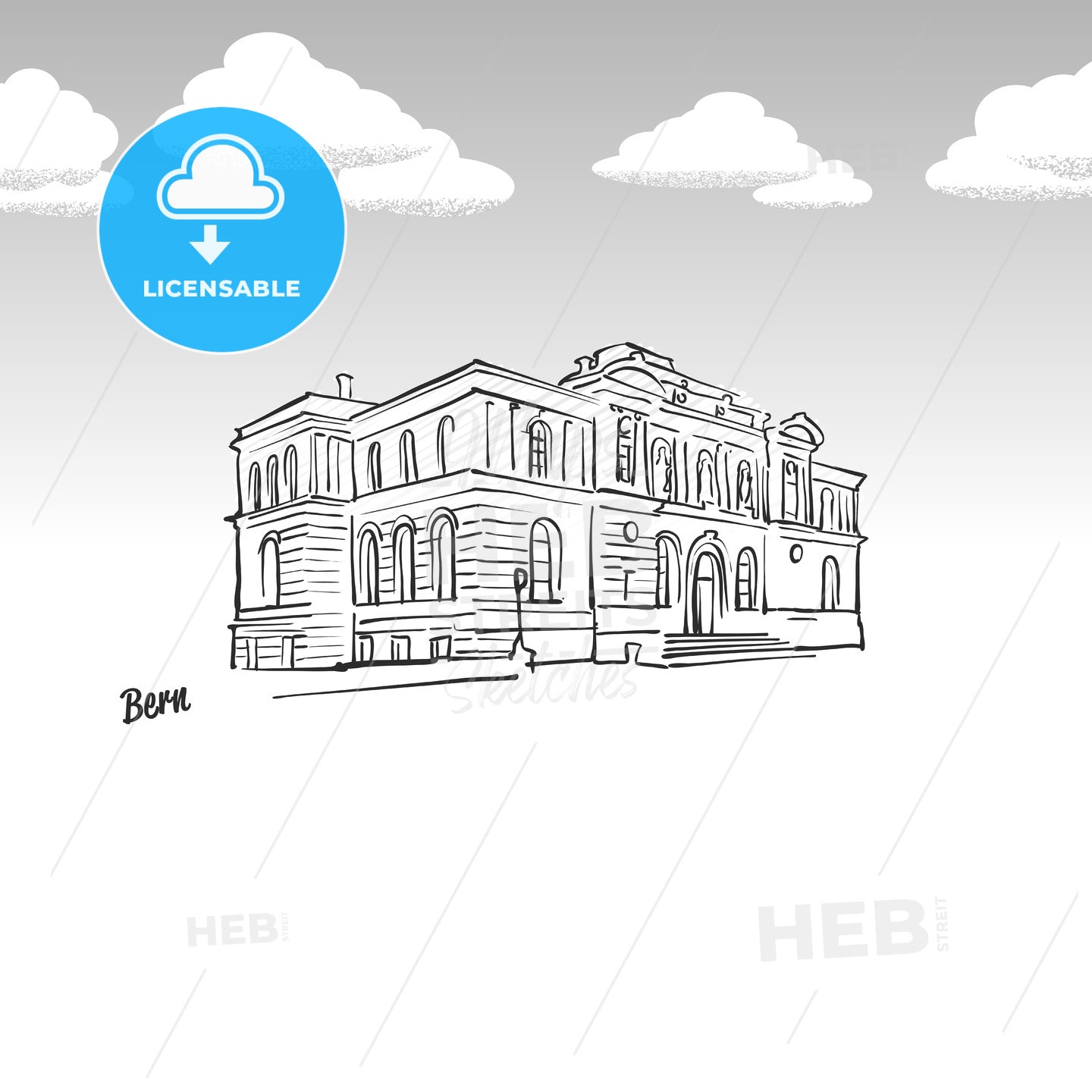 Bern, Switzerland famous landmark sketch. Lineart drawing by hand. Greeting card icon with title, vector illustration