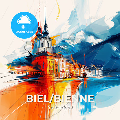 Discover the charm of Biel/Bienne, Switzerland, with our stunning print, "Vibrant Biel/Bienne." This artwork captures the essence of this bilingual city, known for its rich cultural heritage and picturesque landscapes. The line art skyline beautifully illustrates the unique architecture that defines Biel/Bienne, from quaint rooftops to iconic buildings, all elegantly framed by the majestic mountains in the background. The playful use of watercolor vials in the sky and on the structures brings a vibrant, whimsical touch, evoking the city's artistic spirit. With soft gradients and hand-drawn strokes that create a sense of depth and motion, this piece offers a delightful homage to both the urban and natural beauty of the region. Ideal for gifting or enhancing your own interior space, this print serves as a charming reminder of the captivating sights and cultural richness found in Biel/Bienne. Perfect for any home decor setting, it invites viewers to immerse themselves in the tranquility and vibrancy of this Swiss gem.