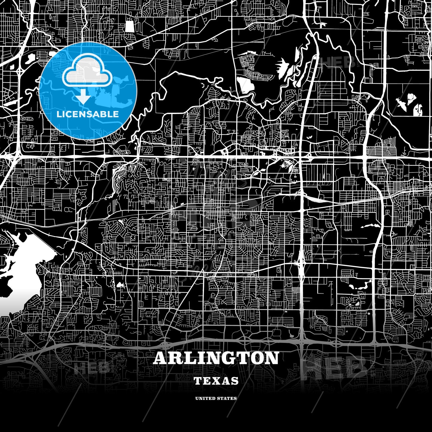 This black map template of Arlington is designed for posters in portrait and square formats. We recommend the PDF−Vector format for larger prints. The entire text has not been converted to outlines and can be changed as needed. The font is not embedded in the file.