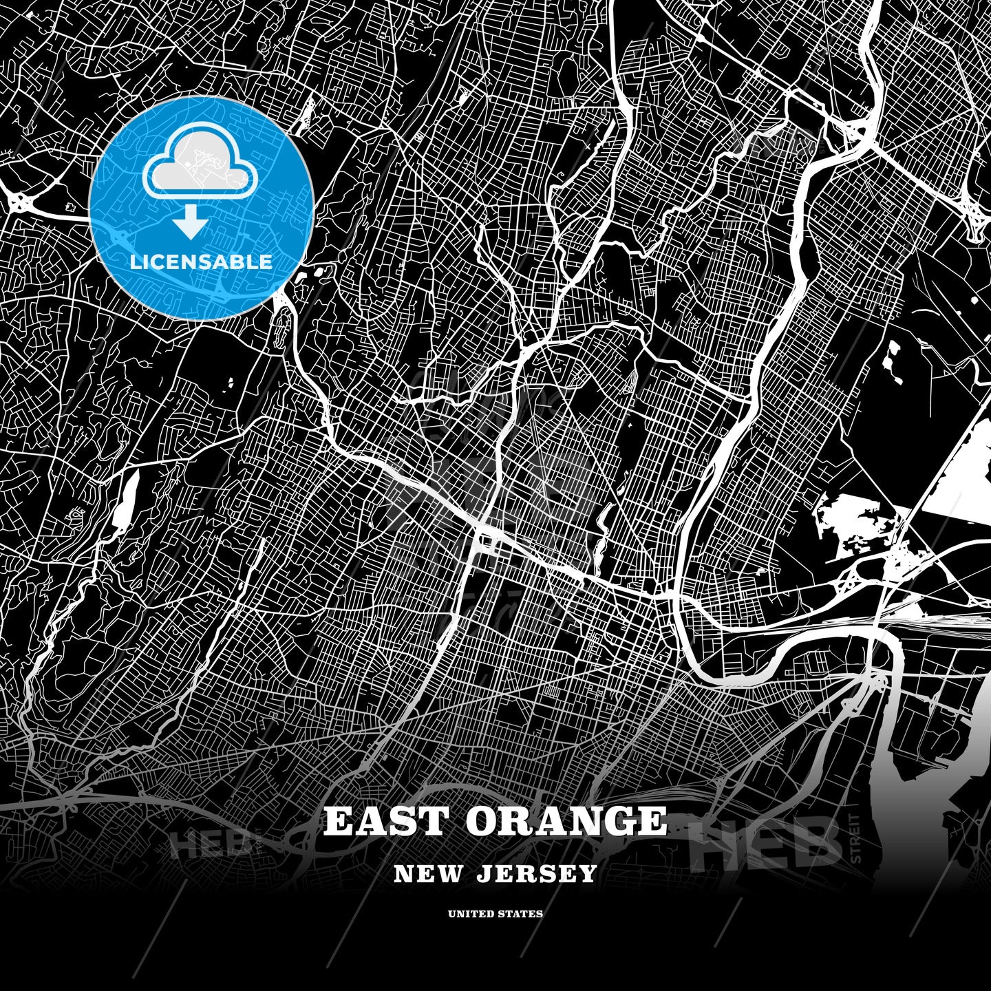 This black map template of East Orange is designed for posters in portrait and square formats. We recommend the PDF−Vector format for larger prints. The entire text has not been converted to outlines and can be changed as needed. The font is not embedded in the file.