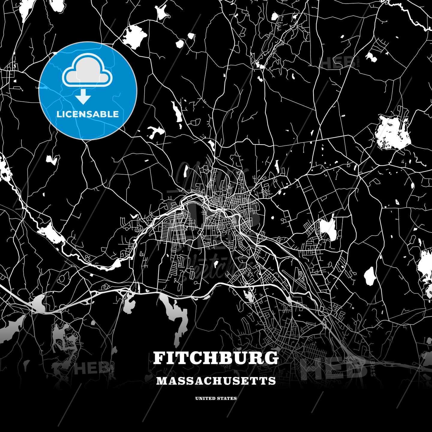 Black map poster template of Fitchburg, Massachusetts, United States.