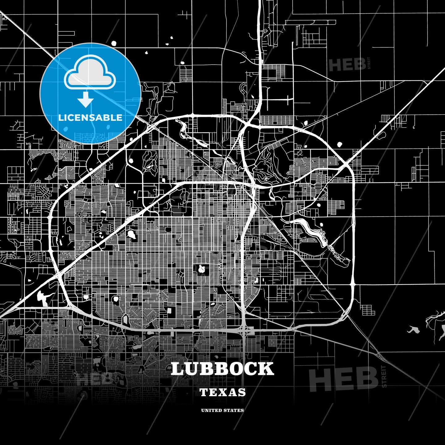 This black map template of Lubbock is designed for posters in portrait and square formats. We recommend the PDF−Vector format for larger prints. The entire text has not been converted to outlines and can be changed as needed. The font is not embedded in the file.