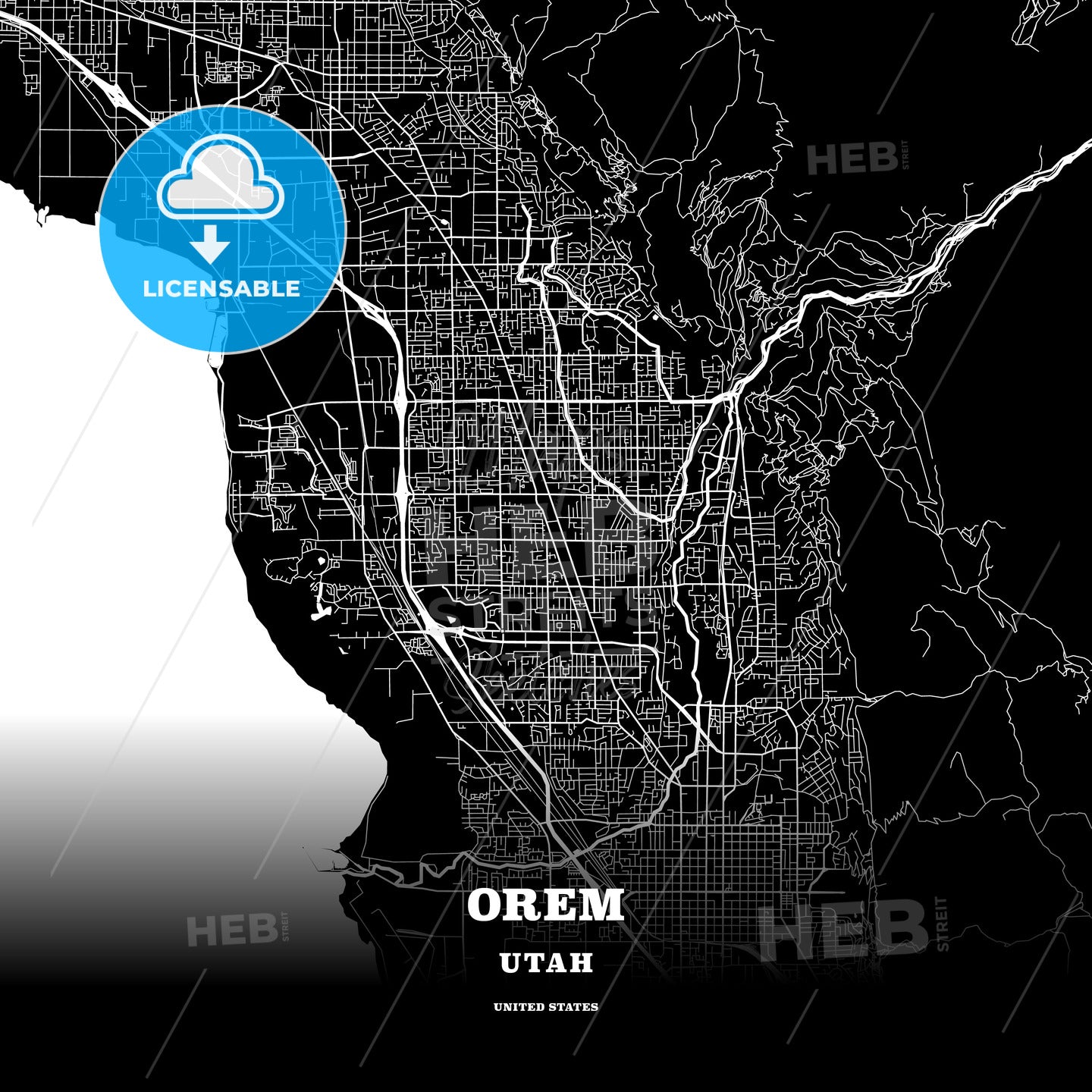 This black map template of Orem is designed for posters in portrait and square formats. We recommend the PDF−Vector format for larger prints. The entire text has not been converted to outlines and can be changed as needed. The font is not embedded in the file.