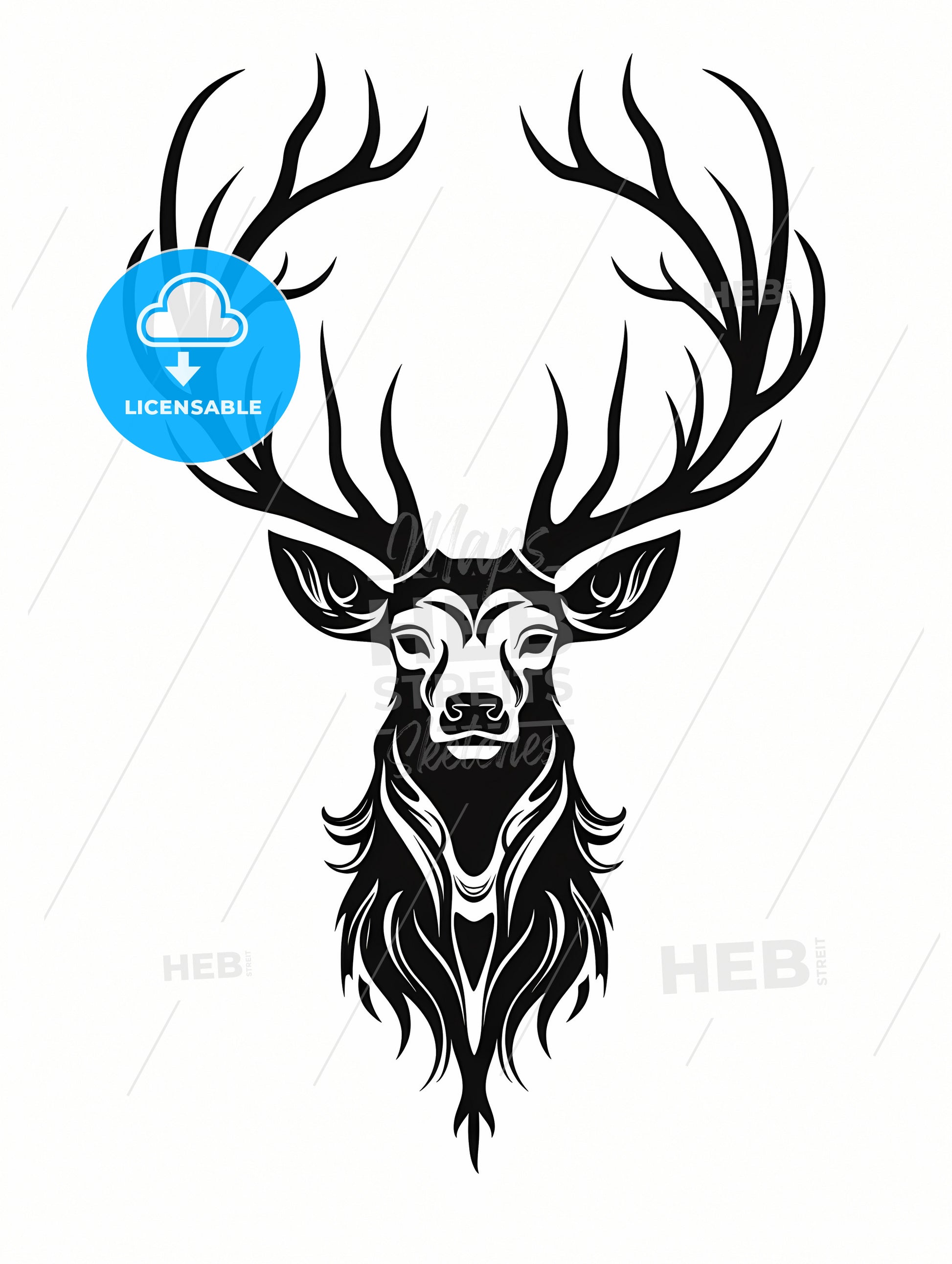 Black Silhouette Stag On White Background - a black and white image of a deer head with antlers