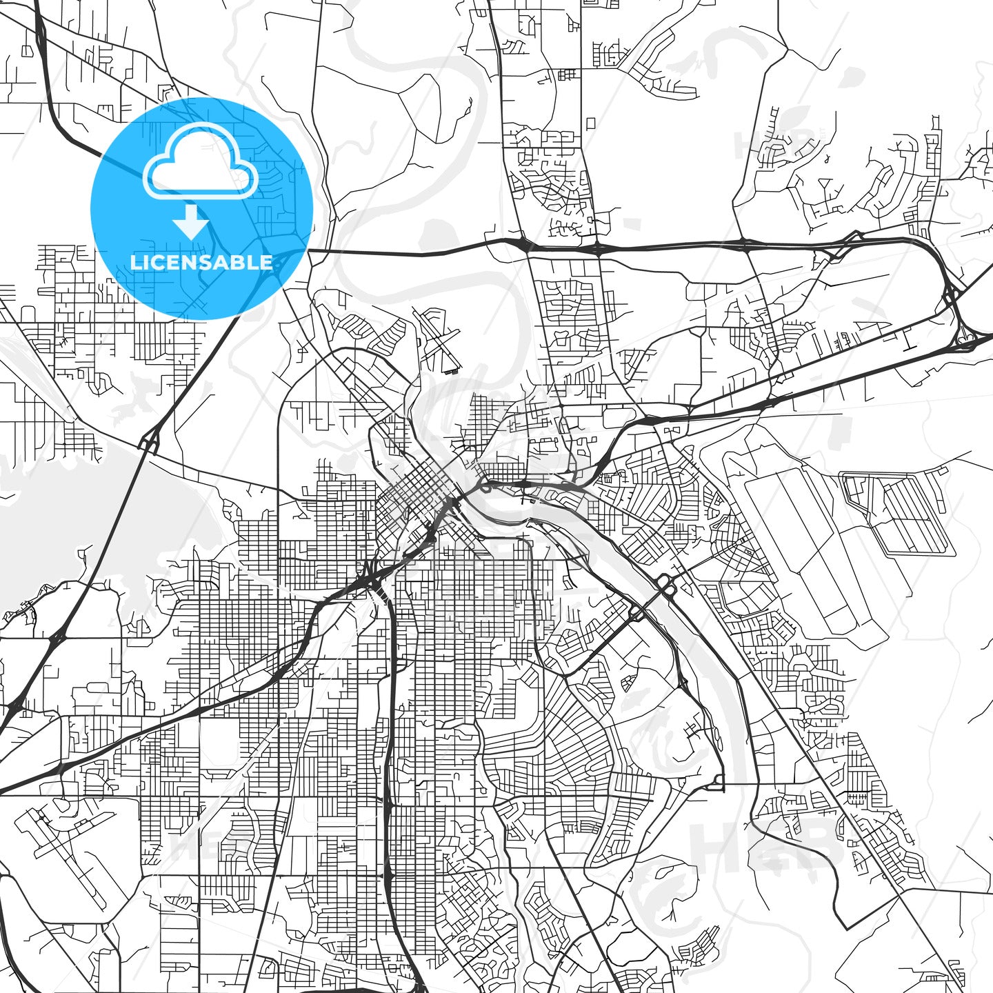 Bossier City downtown and surroundings Map in light shaded version with many details for high zoom levels. This map of Bossier City contains typical landmarks with space for additional information and easy access to color changes.
