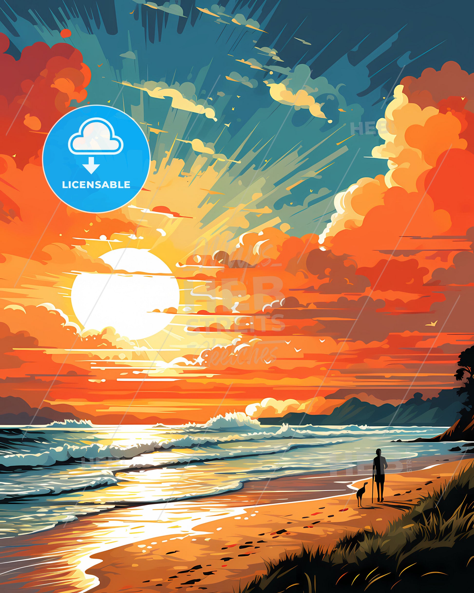 Bournemouth, South West England, Skyline. art painting with blue sky some bright clouds in spring. in style of classic advertising illustration with nice gradients. Nice strokes and outlines that captures the playful spirit and vivid imagination of modern art.
