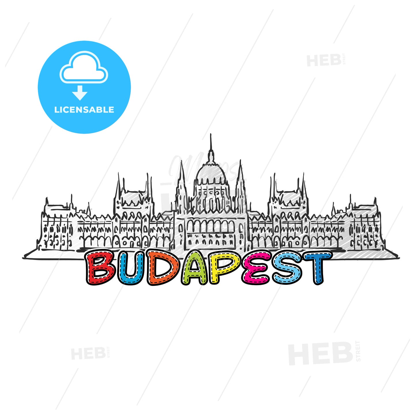 Budapest beautiful sketched icon, famous hand-drawn landmark, city name lettering, vector illustration