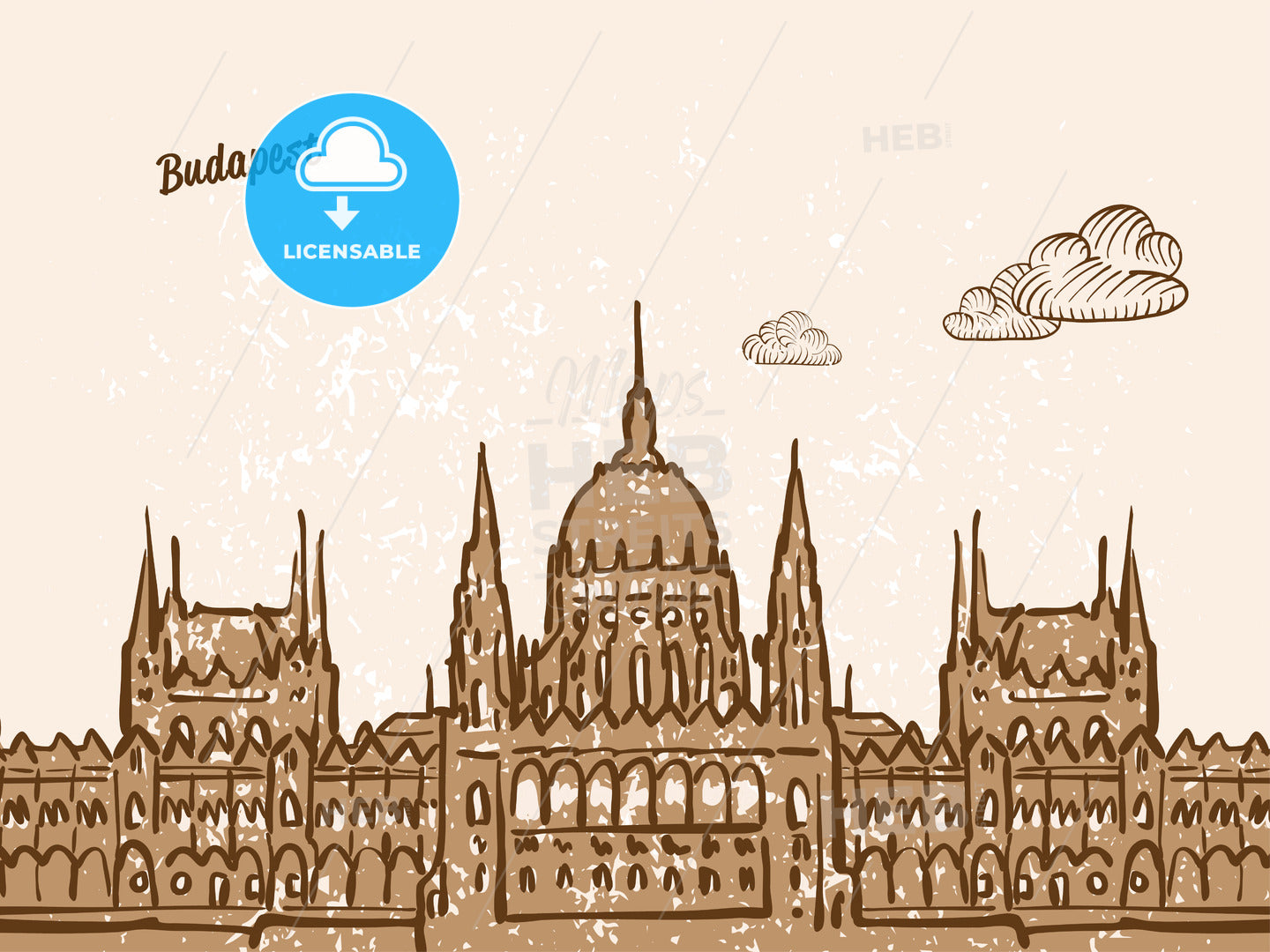 Budapest, Hungary, Greeting Card, hand drawn image, famous european capital, vintage style, vector Illustration