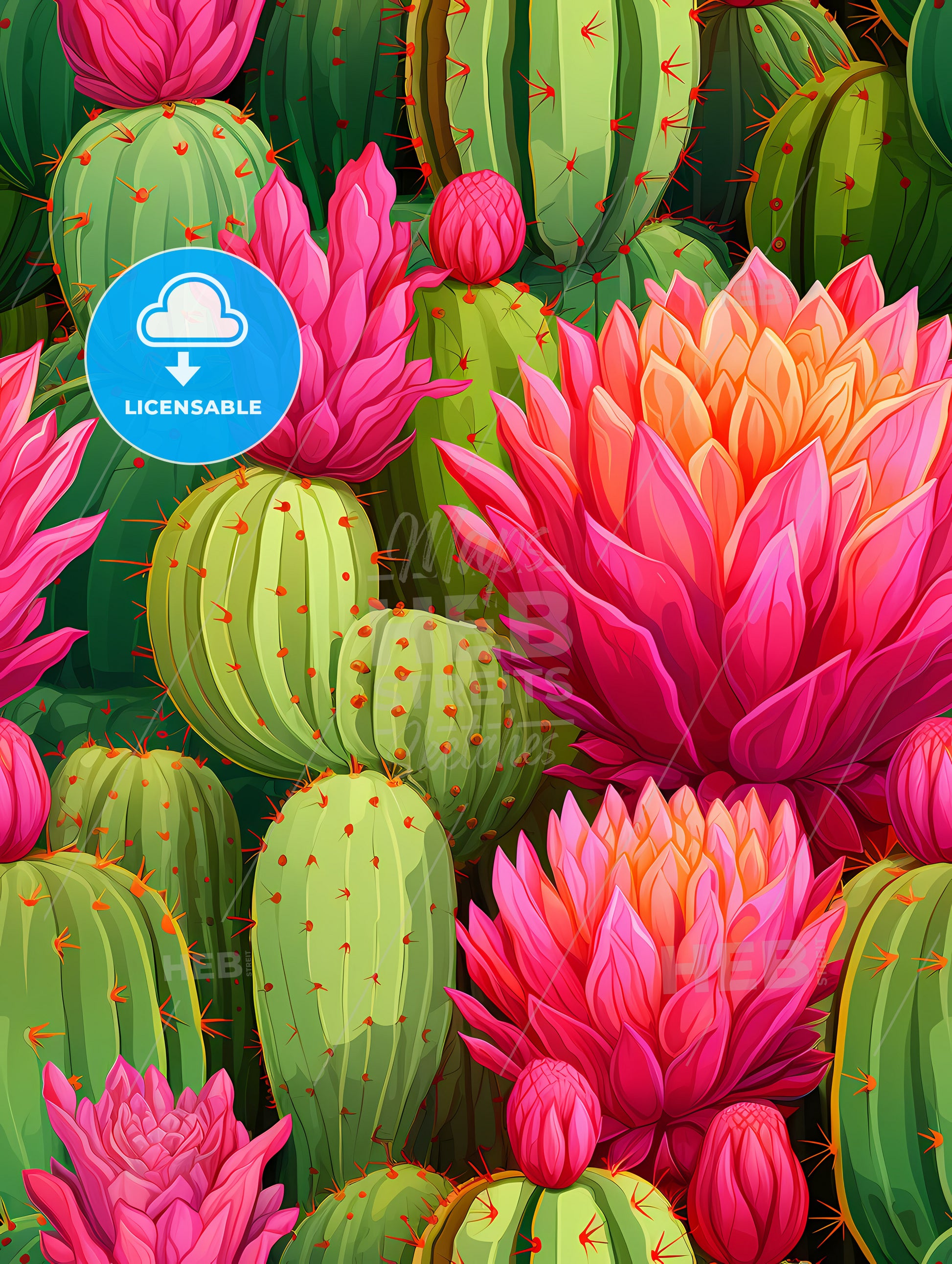 Cactuses Green On Pink Vector Seamless Pattern - a group of cactus plants