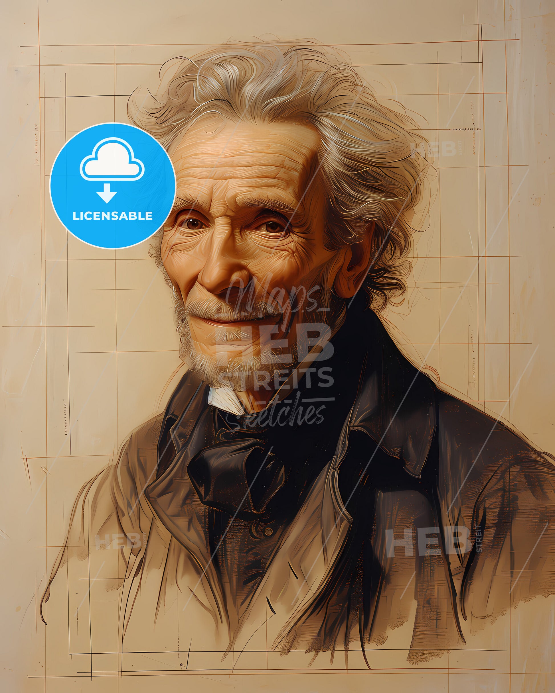 Portrait of Carl Linnaeus, 1707 - 1778, Botanist, Swedish botanist and physician, father of modern taxonomy, developed the binomial nomenclature system. smiling. Vintage art illustration on bright beige paper background, sweeping overdrawn lines, subtile colored artwork, that captures the playful spirit and vivid imagination of modern art.