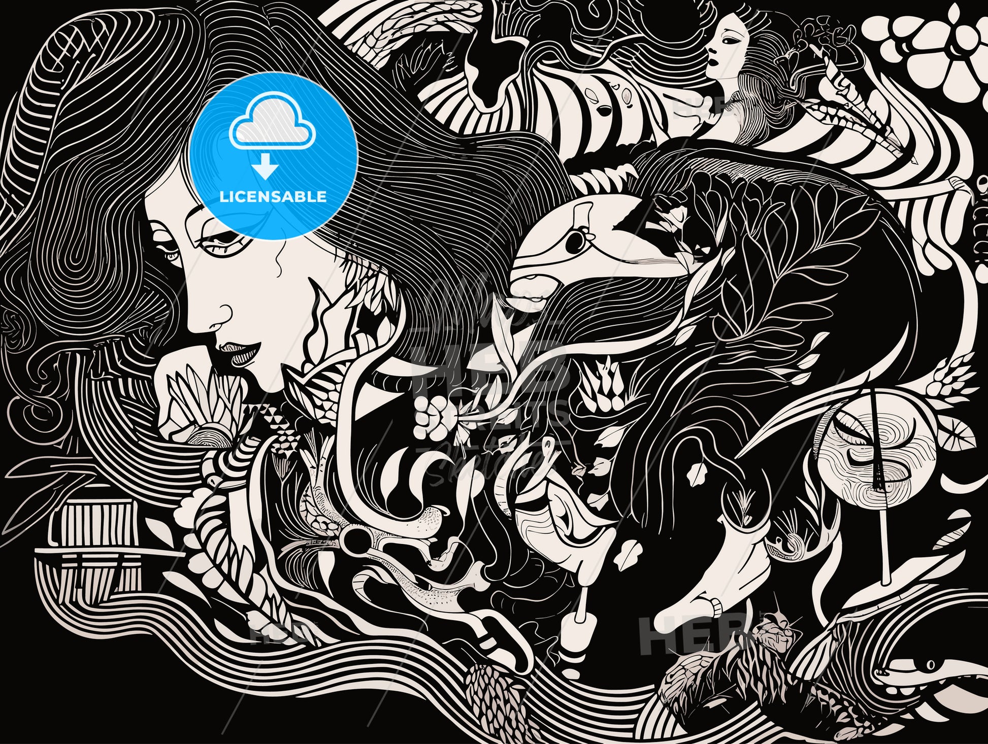Chinese Printmakers Carve Exquisite Prints. - a black and white art of a woman