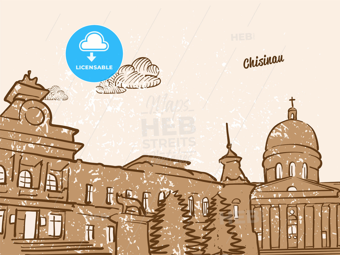 Chisinau, Moldova, Greeting Card, hand drawn image, famous european capital, vintage style, vector Illustration