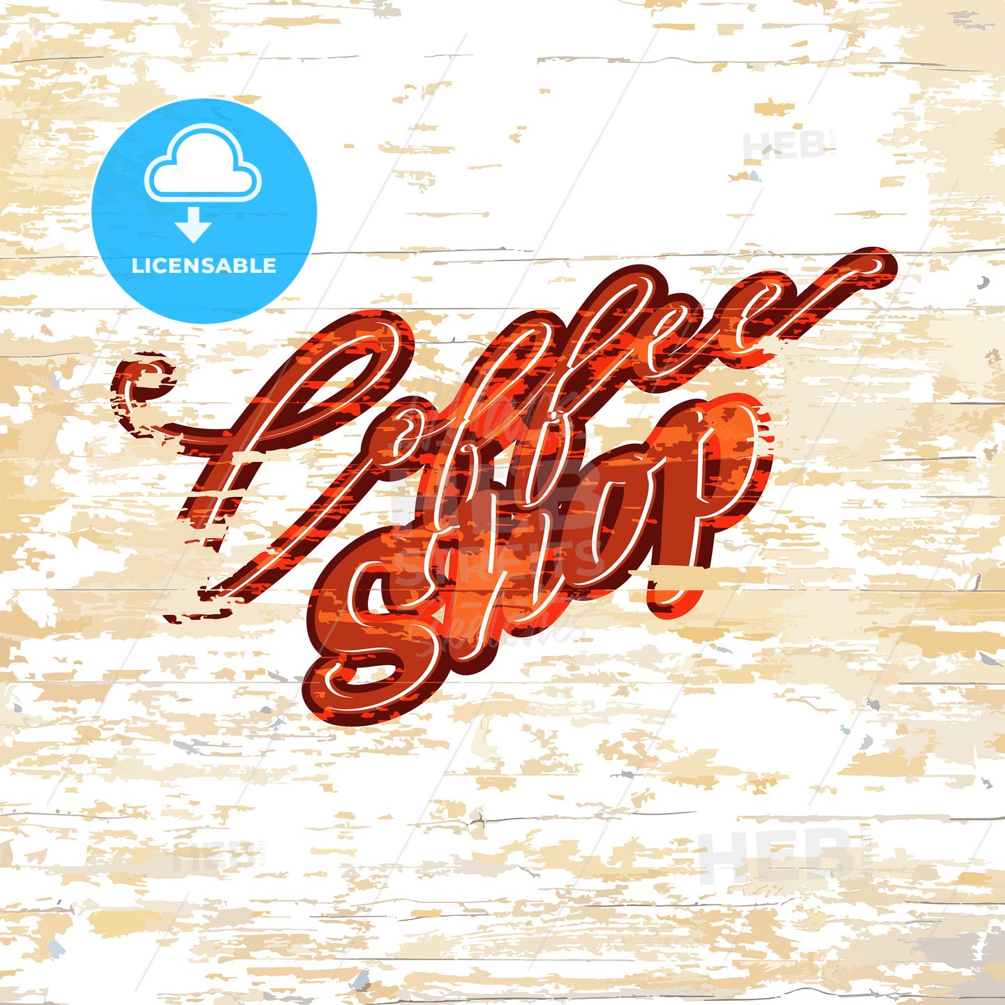 Coffee shop lettering on wooden background. Vector illustration drawn by hand.