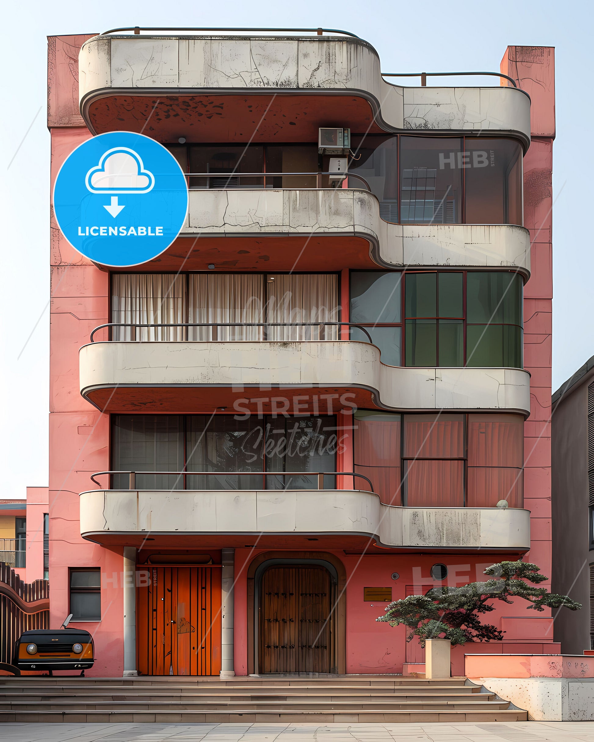 Geometric Lines, Vibrant Painting, Modern Architecture, Balcony Focus, Abstract Canvas, Art Decor