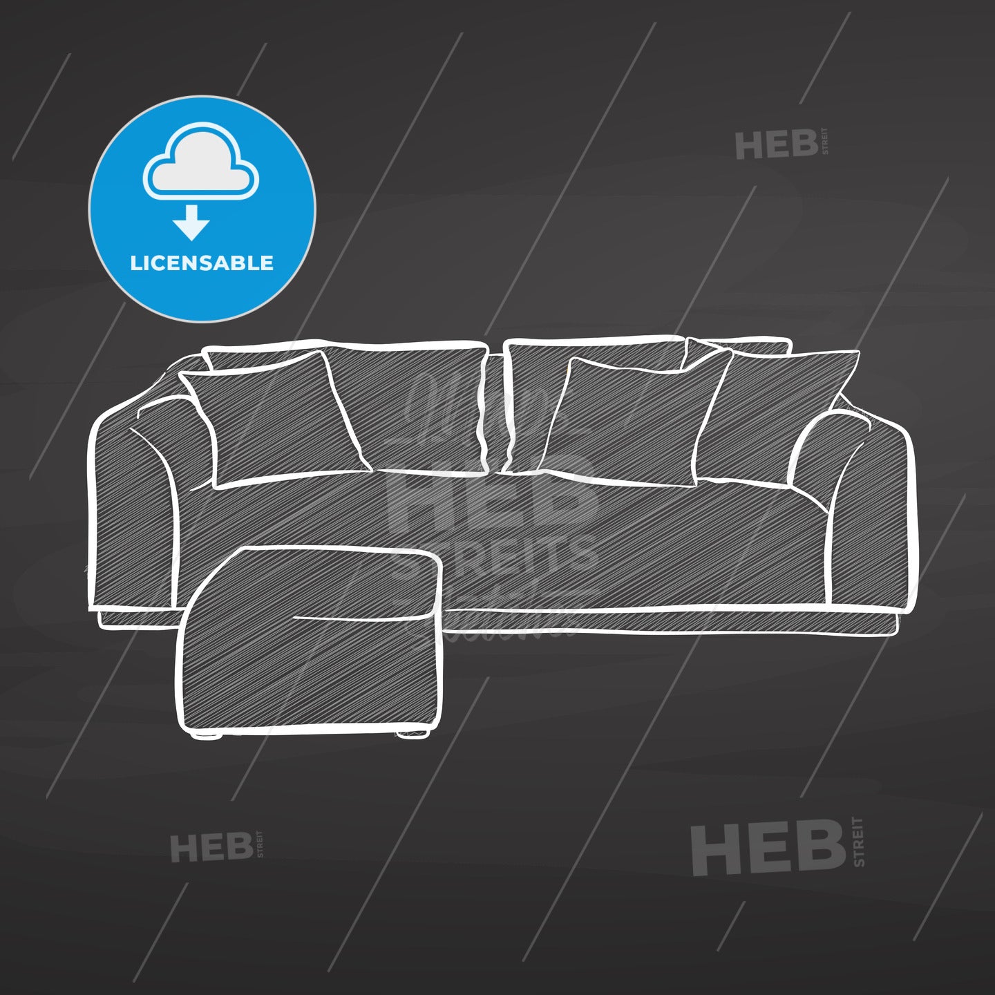 couch drawing on chalkboard. hand-drawn vector sketch. business concept design.