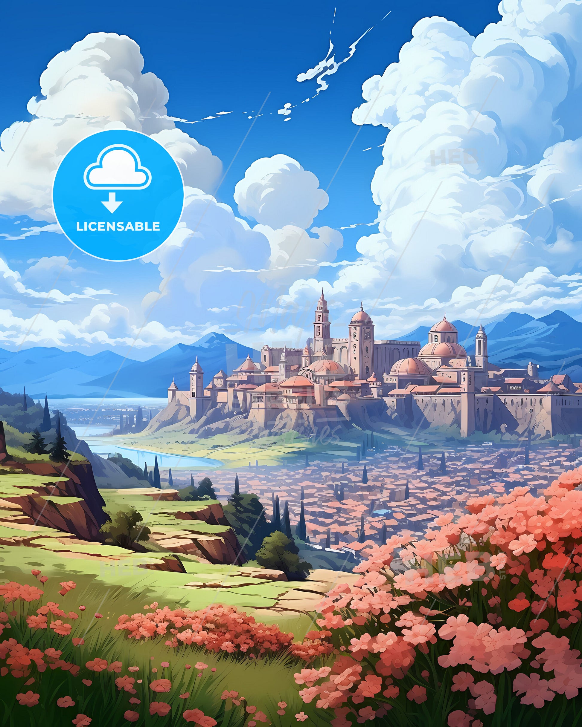 Cusco Peru Skyline Vibrant Colorful Artistic Landscape Painting