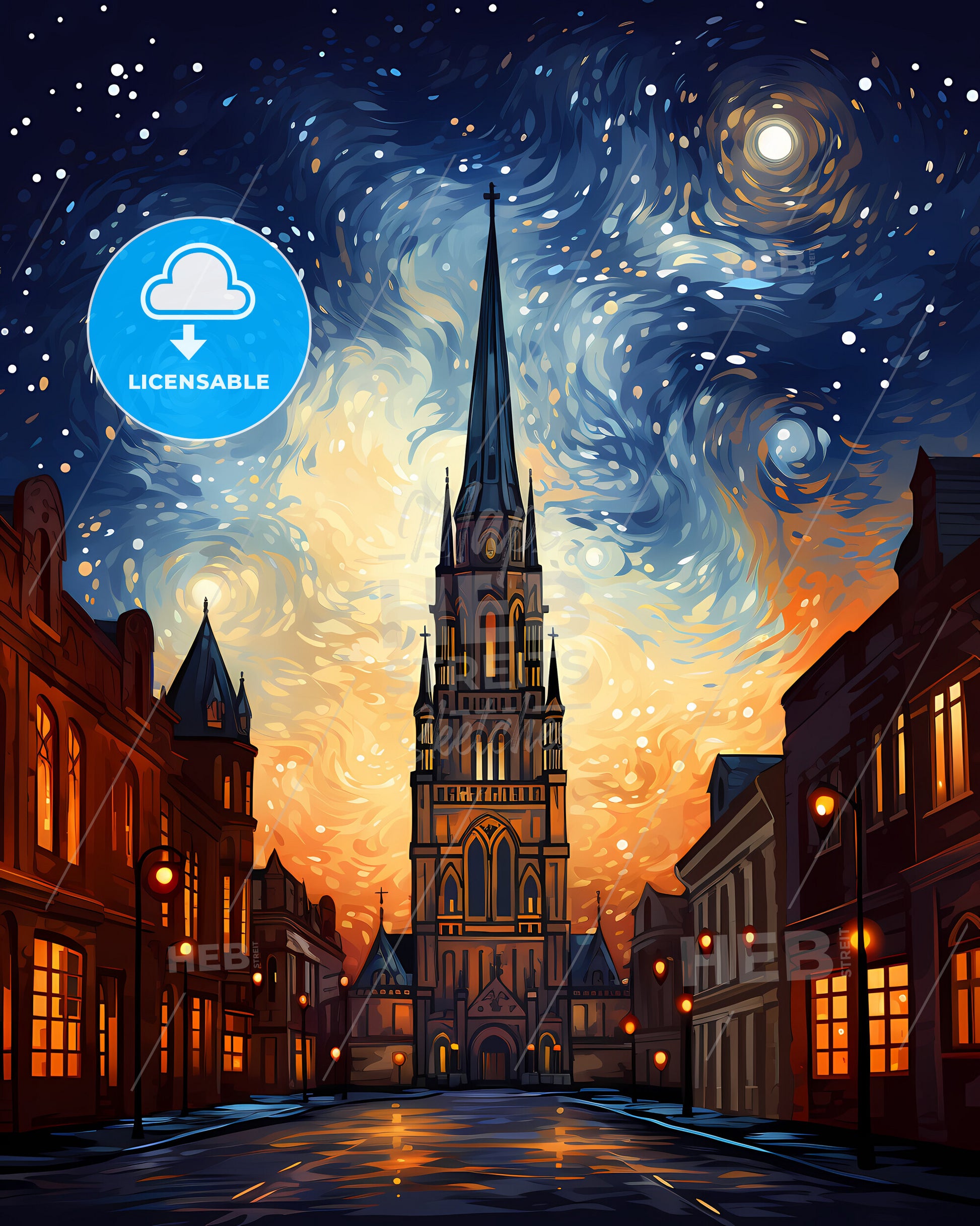 De Ronde Venen, Utrecht, Netherlands, Skyline. art painting with blue sky some bright clouds in spring. in style of classic advertising illustration with nice gradients. Nice strokes and outlines that captures the playful spirit and vivid imagination of modern art.