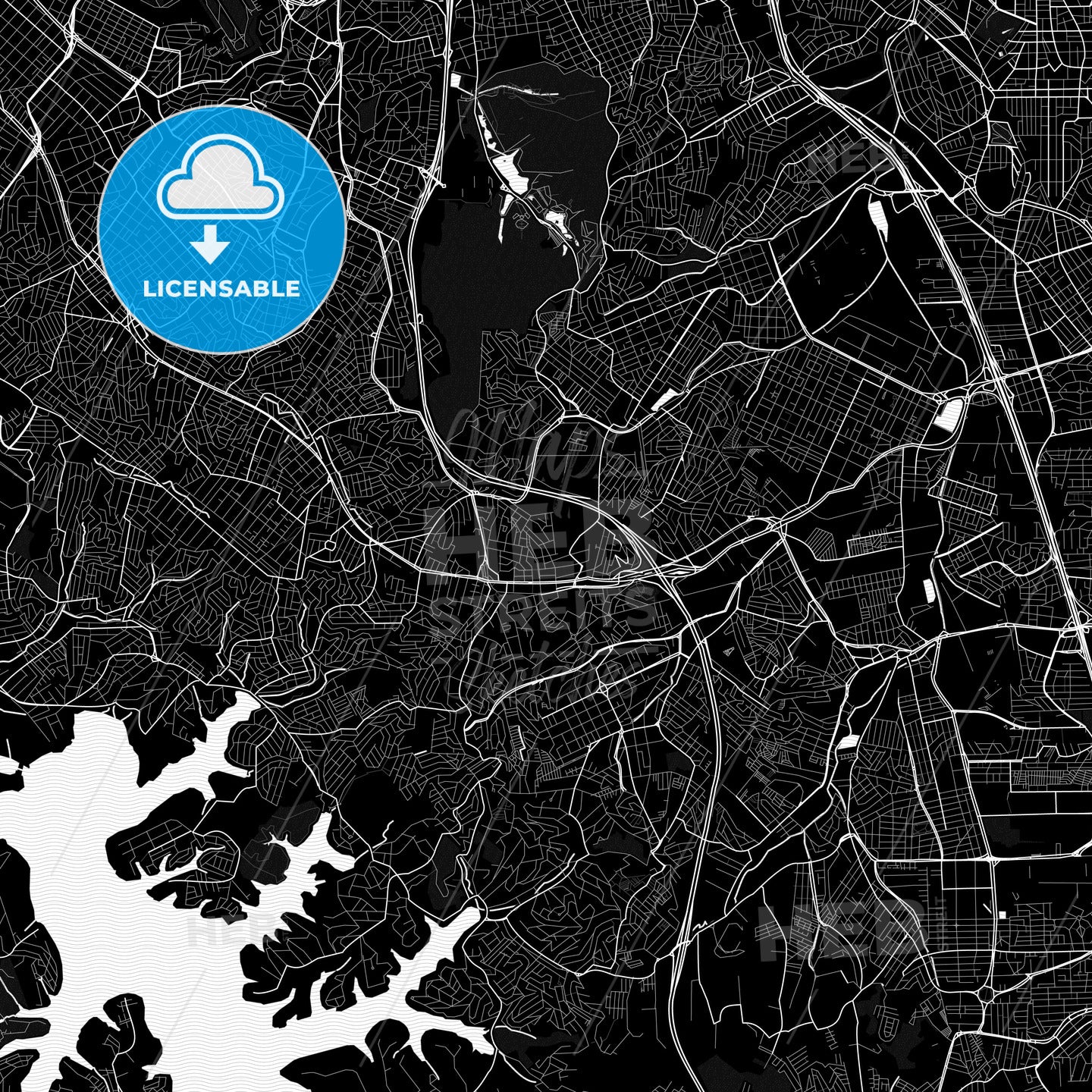 Black and white vector map of Diadema, Brazil, Brazil with fine structures and patterns for download. This printable map of Diadema with major and minor roads has been carefully designed for all personal and professional needs. The pure PDF vector version of this map is fully scalable. Depending on our license, you can use this map for websites, marketing background and wall art.