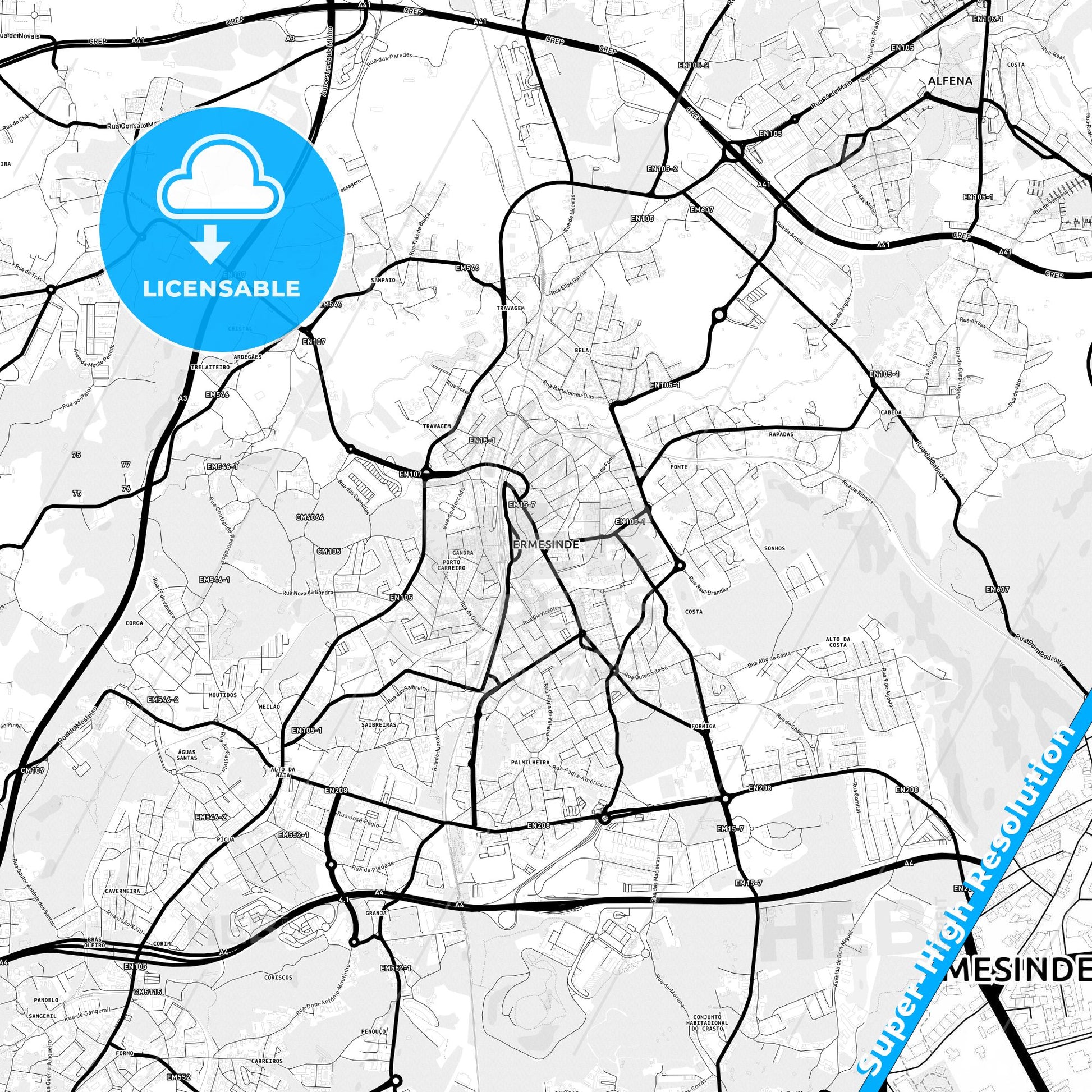 Ermesinde, Portugal Light Map with Street Names, City Names, and Districts