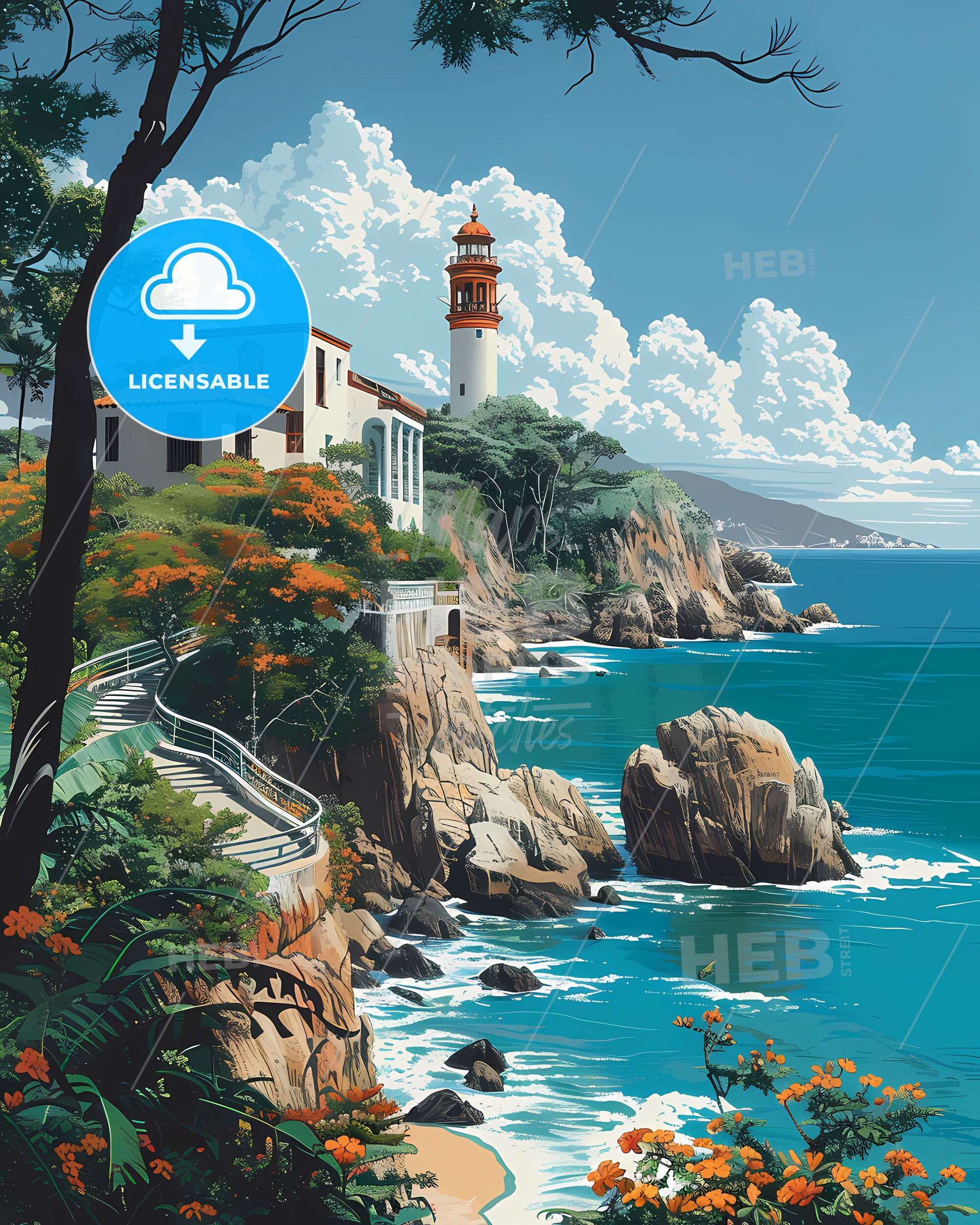 Colorful Abstract Painting of Oceanside Architecture in Venezuela's Federal Dependencies