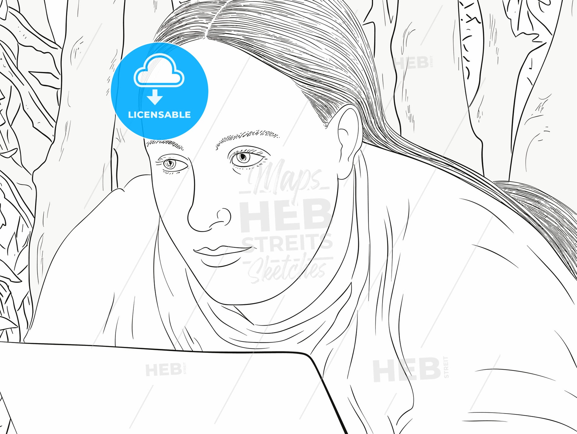 Female Student Partially Smiling While Looking At Laptop - a woman looking at a laptop