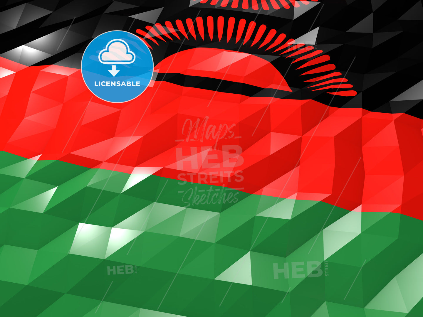 Flag of Malawi 3D Wallpaper Illustration, National Symbol, Low Polygonal Glossy Origami Style