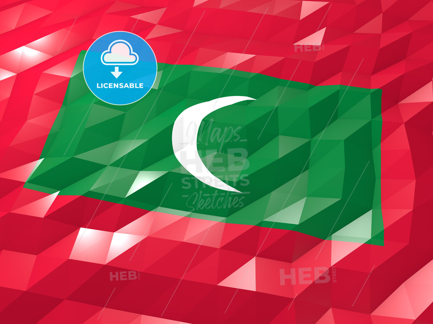 Flag of Maldives 3D Wallpaper Illustration, National Symbol, Low Polygonal Glossy Origami Style