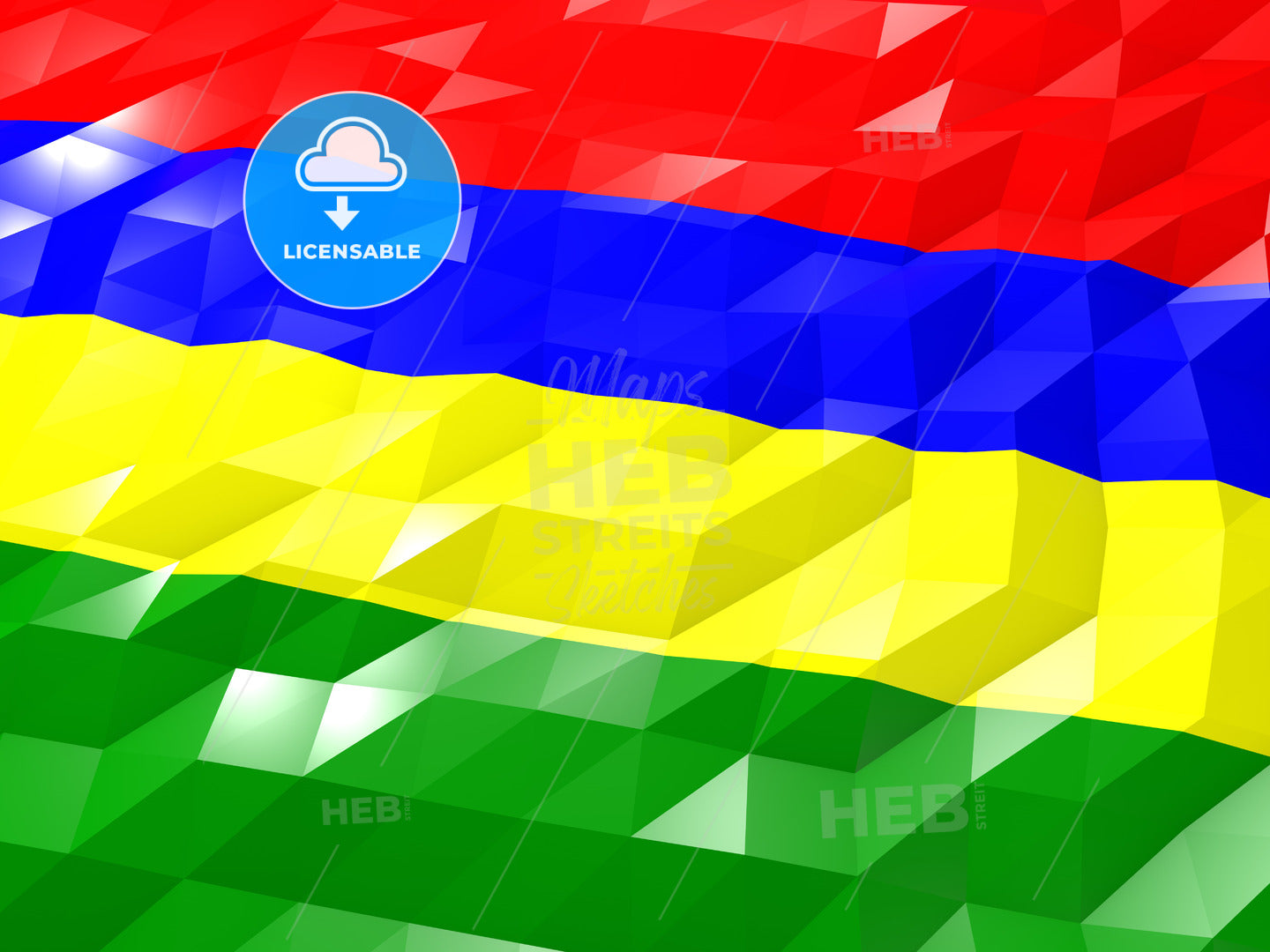 Flag of Mauritius 3D Wallpaper Illustration, National Symbol, Low Polygonal Glossy Origami Style