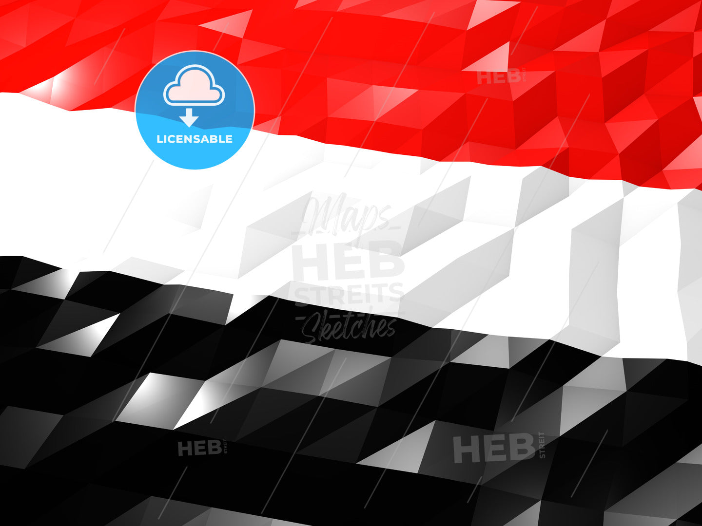 Flag of Yemen 3D Wallpaper Illustration, National Symbol, Low Polygonal Glossy Origami Style